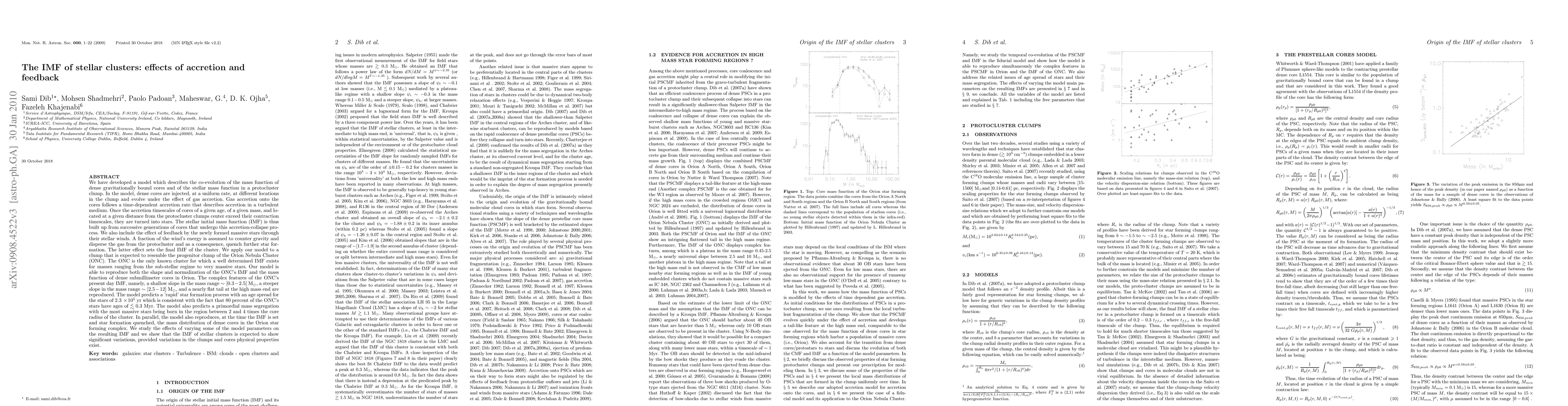 (abridged) We develop a model which describes the coevolution of the mass function of dense cores and of the IMF in a protocluster clump. In the model, cores injected in the clump evolve under the effect of gas accretion. Accretion onto the cores follows a time-dependent accretion rate that describes accretion in a turbulent medium. Once the accretion timescales of cores exceed their contraction timescales, they are turned into stars. We include the effect of feedback by the newly formed massive stars through their stellar winds. A fraction of the wind's energy is assumed to counter gravity and disperse the gas from the protocluster and as a consequence, quench further star formation. The latter effect sets the final IMF of the cluster. We apply our model to a clump that is expected to resemble the progenitor clump of the Orion Nebula Cluster (ONC). Our model is able to reproduce both the shape and normalization of the ONC's IMF and the mass function of dense cores in Orion. The complex features of the ONC's IMF,i.e., a shallow slope in the mass range ~0.3-2.5 Msol,a steeper slope in the mass range ~2.5-12 Msol, and a nearly flat tail at the high mass end are reproduced. The model predicts a 'rapid' star formation process with an age spread for the stars of 2.3 10^5 yr which is consistent with the fact that 80% of the ONC's stars have ages of <=0.3 Myr. The model predicts a primordial mass segregation with the most massive stars being born in the region between 2-4 times the core radius of the cluster. In parallel, the model also reproduces, simultaneously, the mass function of dense cores in Orion. We study the effects of varying the model parameters on the resulting IMF and show that the IMF of stellar clusters is expected to show significant variations, provided variations in the clumps and cores properties exist.
