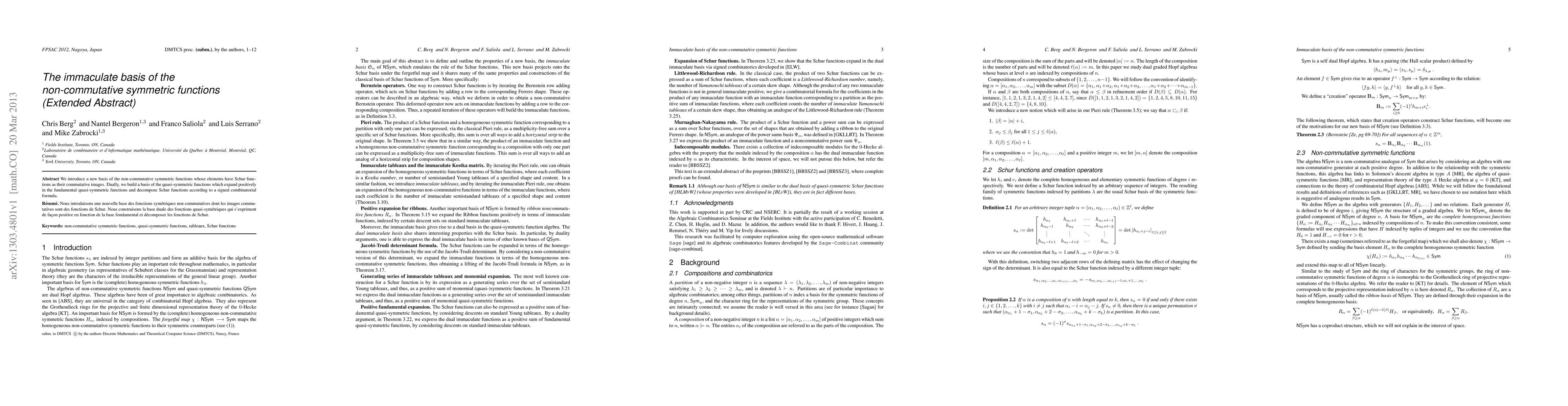FPSAC 2013 Extended Abstract. We introduce a new basis of the non-commutative symmetric functions whose elements have Schur functions as their commutative images. Dually, we build a basis of the quasi-symmetric functions which expand positively in the fundamental quasi-symmetric functions and decompose Schur functions according to a signed combinatorial formula.