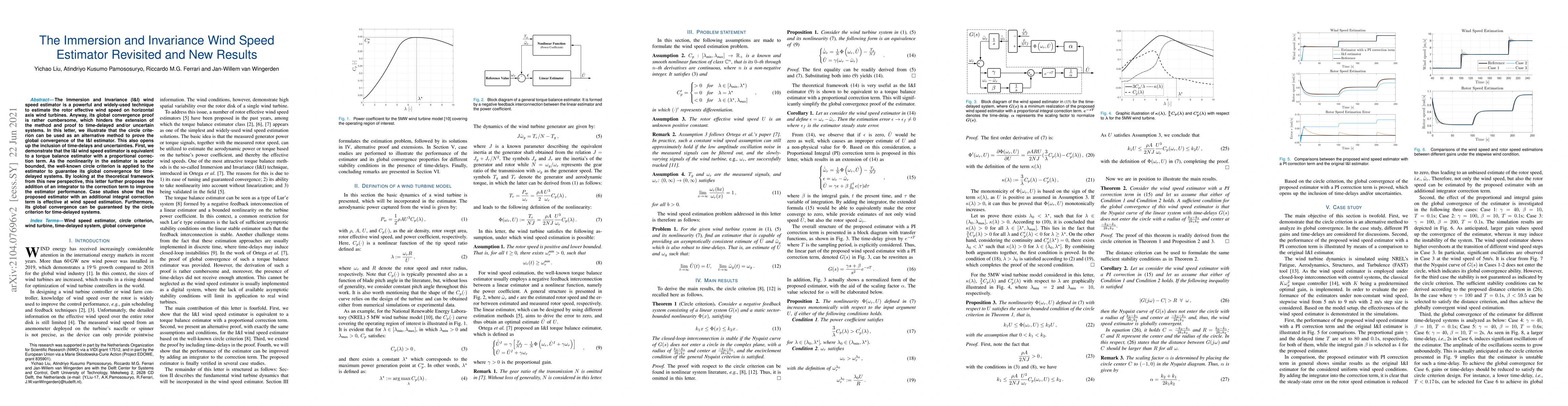 This paper revisits the Immersion and Invariance wind speed estimator for horizontal axis wind turbines, proposing an alternative global convergence proof using the circle criterion. It introduces an improved estimator with an additional integral correction term, demonstrating enhanced performance and global convergence for time-delayed systems.