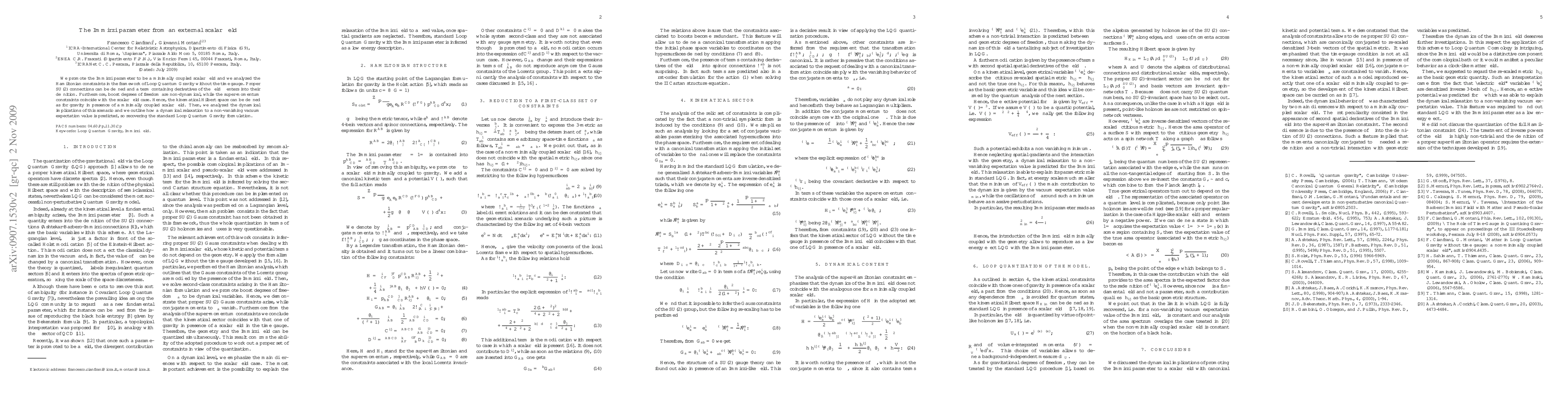 We promote the Immirzi parameter to be a minimally coupled scalar field and we analyzed the Hamiltonian constraints in the framework of Loop Quantum Gravity without the time gauge. Proper SU(2) connections can be defined and a term containing derivatives of the field $\beta$ enters into their definition. Furthermore, boost degrees of freedom are non-dynamical, while the super-momentum constraints coincide with the scalar field case. Hence, the kinematical Hilbert space can be defined as for gravity in presence of a minimally coupled scalar field. Then, we analyzed the dynamical implications of this scenario and we outlined how a the dynamical relaxation to a non-vanishing vacuum expectation value is predicted.