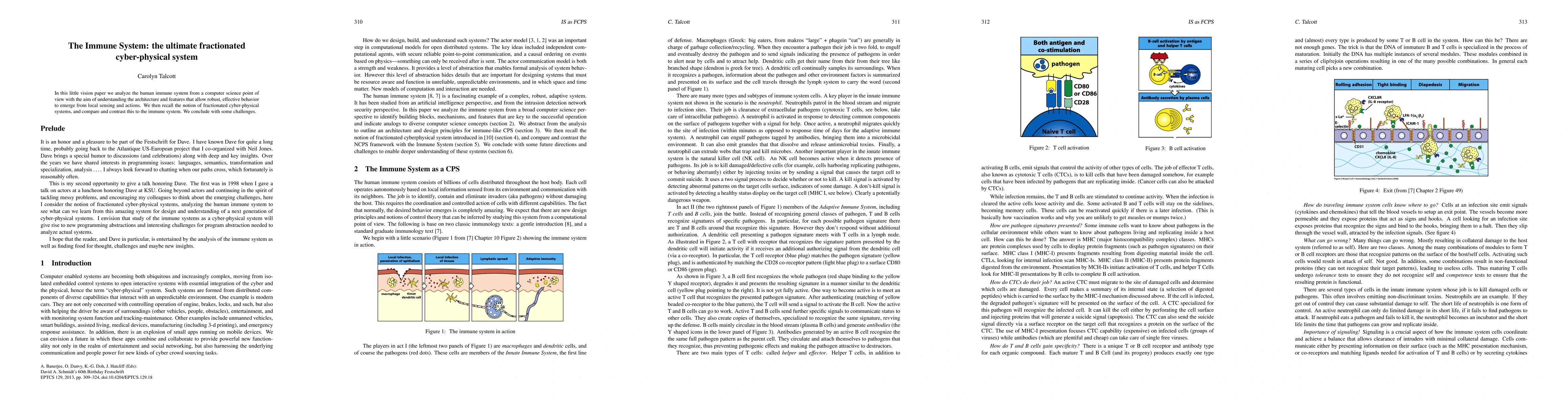 This paper explores the human immune system via a computer science lens, highlighting its robust and effective behavior from local actions, and draws parallels with fractionated cyber-physical systems, concluding with identified challenges.