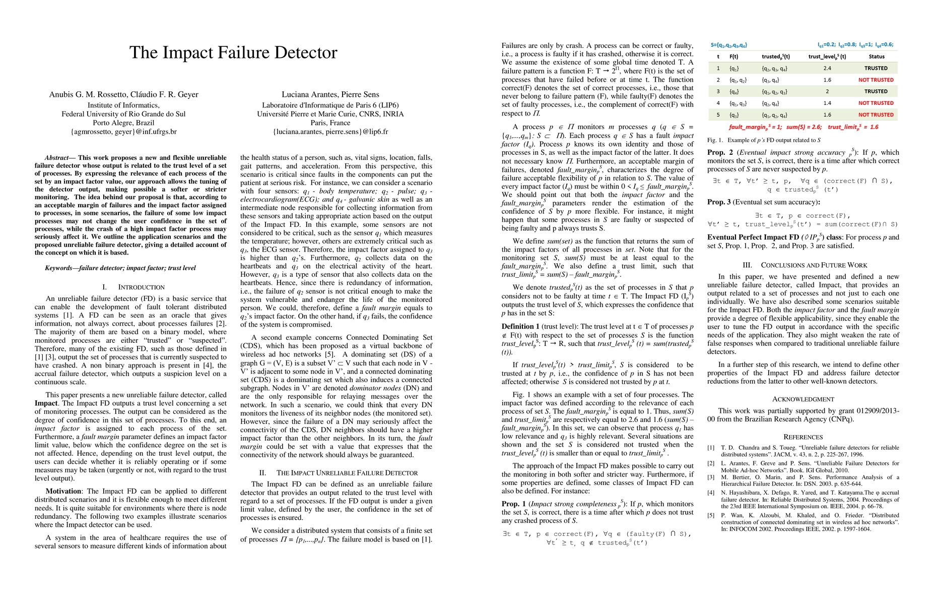 A new unreliable failure detector is proposed to balance monitoring sensitivity with user confidence in a set of processes, adjusting output based on process impact factors.