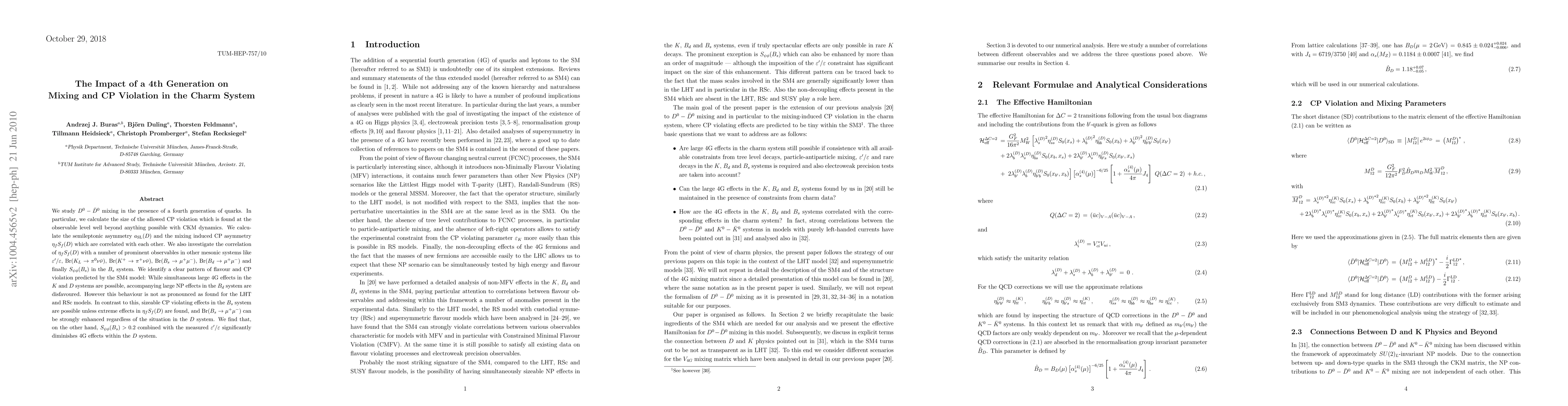 We study D0-D0 mixing in the presence of a fourth generation of quarks. In particular, we calculate the size of the allowed CP violation which is found at the observable level well beyond anything possible with CKM dynamics. We calculate the semileptonic asymmetry a_SL and the mixing induced CP asymmetry eta_fS_f which are correlated with each other. We also investigate the correlation of eta_fS_f with a number of prominent observables in other mesonic systems like epsilon'/epsilon, Br(K_L -> pi0 nu nu), Br(K+ -> pi+ nu nu), Br(B_s ->mu+ mu-), Br(B_d -> mu+ mu-) and finally S_psi phi in the B_s system. We identify a clear pattern of flavour and CP violation predicted by the SM4 model: While simultaneous large 4G effects in the K and D systems are possible, accompanying large NP effects in the B_d system are disfavoured. However this behaviour is not as pronounced as found for the LHT and RSc models. In contrast to this, sizeable CP violating effects in the B_s system are possible unless extreme effects in eta_fS_f are found, and Br(B_s ->mu+ mu-) can be strongly enhanced regardless of the situation in the D system. We find that, on the other hand, S_psi phi > 0.2 combined with the measured epsilon'/epsilon significantly diminishes 4G effects within the D system.
