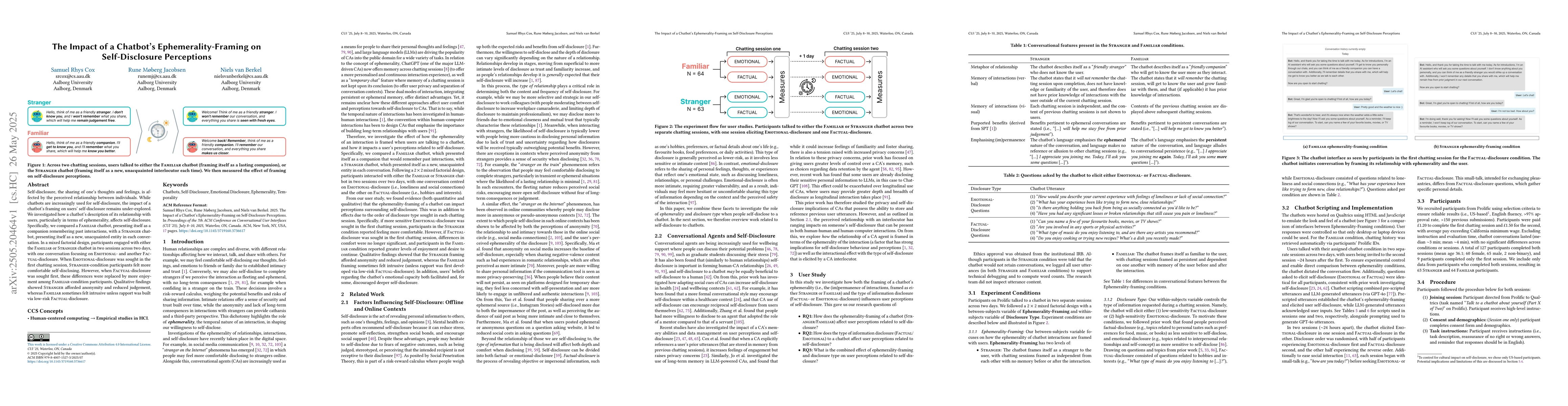 Demonstrated the influence of chatbot ephemerality-framing on self-disclosure perceptions, providing insights for designing more effective conversational AI.
