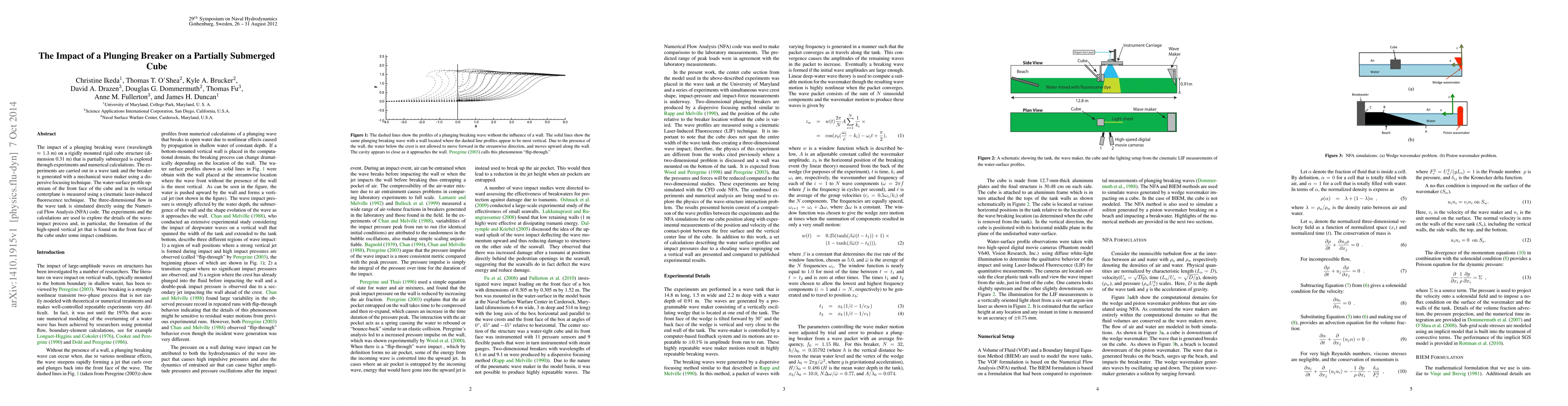 This paper investigates the effects of a plunging breaking wave on a partially submerged cube structure through experimental and numerical methods, focusing on the formation of high-speed jets on the cube's front face using laser-based measurements and flow simulations.