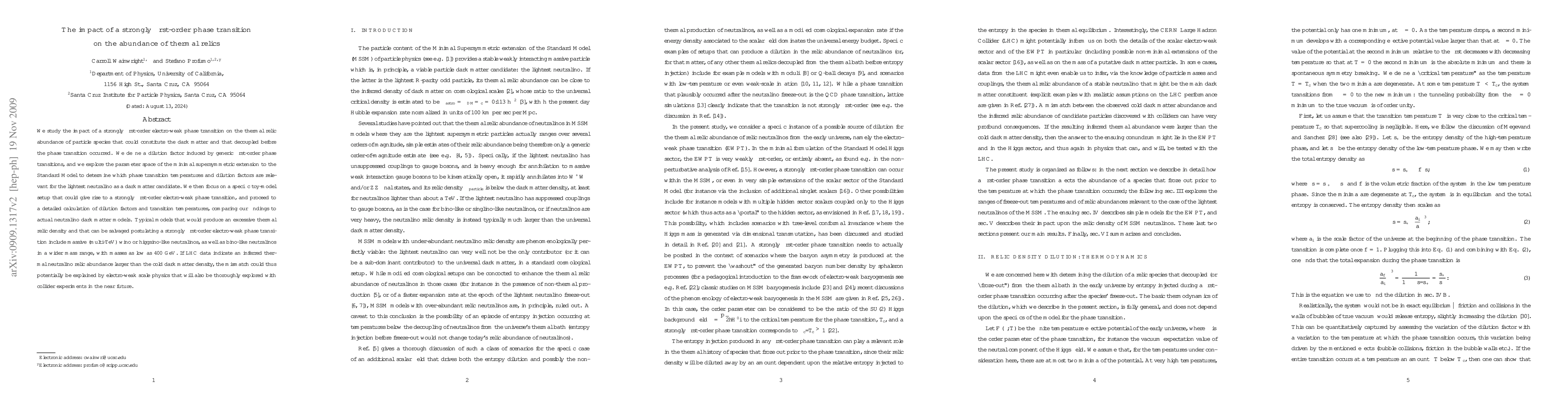 We study the impact of a strongly first-order electro-weak phase transition on the thermal relic abundance of particle species that could constitute the dark matter and that decoupled before the phase transition occurred. We define a dilution factor induced by generic first-order phase transitions, and we explore the parameter space of the minimal supersymmetric extension to the Standard Model to determine which phase transition temperatures and dilution factors are relevant for the lightest neutralino as a dark matter candidate. We then focus on a specific toy-model setup that could give rise to a strongly first-order electro-weak phase transition, and proceed to a detailed calculation of dilution factors and transition temperatures, comparing our findings to actual neutralino dark matter models. Typical models that would produce an excessive thermal relic density and that can be salvaged postulating a strongly first-order electro-weak phase transition include massive (multi-TeV) wino or higgsino-like neutralinos, as well as bino-like neutralinos in a wider mass range, with masses as low as 400 GeV. If LHC data indicate an inferred thermal neutralino relic abundance larger than the cold dark matter density, the mismatch could thus potentially be explained by electro-weak scale physics that will also be thoroughly explored with collider experiments in the near future.