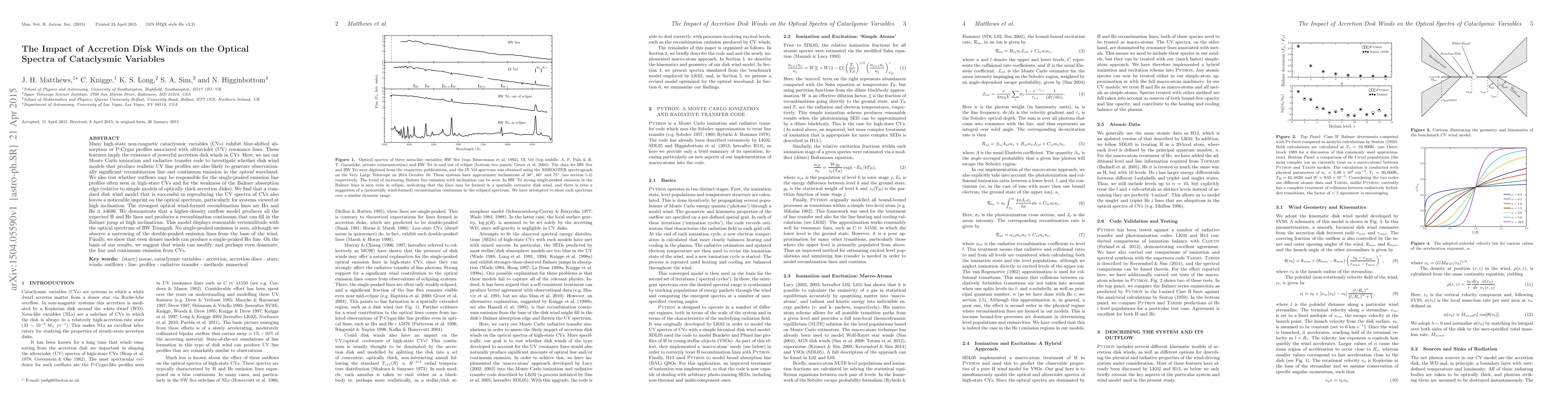 This study investigates how accretion disk winds in cataclysmic variables (CVs) affect their optical spectra, finding that these winds can significantly alter optical emission lines and continuum, particularly for systems viewed at high inclinations. The research suggests that winds may dominate the optical spectral features of CVs, modifying or even replacing the emission typically expected from optically thick accretion disks.