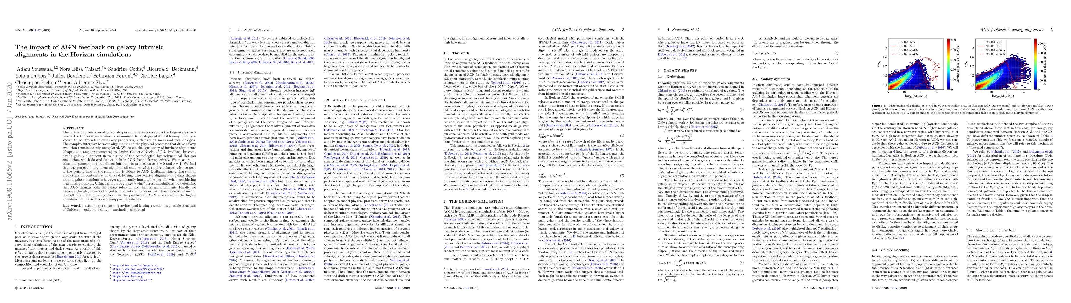 The intrinsic correlations of galaxy shapes and orientations across the large-scale structure of the Universe are a known contaminant to weak gravitational lensing. They are known to be dependent on galaxy properties, such as their mass and morphologies. The complex interplay between alignments and the physical processes that drive galaxy evolution remains vastly unexplored. We assess the sensitivity of intrinsic alignments (shapes and angular momenta) to Active Galactic Nuclei -AGN- feedback by comparing galaxy alignment in twin runs of the cosmological hydrodynamical Horizon simulation, which do and do not include AGN feedback respectively. We measure intrinsic alignments in three dimensions and in projection at z=0 and z=1. We find that the projected alignment signal of all galaxies with resolved shapes with respect to the density field in the simulation is robust to AGN feedback, thus giving similar predictions for contamination to weak lensing. The relative alignment of galaxy shapes around galaxy positions is however significantly impacted, especially when considering high-mass ellipsoids. Using a sample of galaxy "twins" across simulations, we determine that AGN changes both the galaxy selection and their actual alignments. Finally, we measure the alignments of angular momenta of galaxies with their nearest filament. Overall, these are more significant in the presence of AGN as a result of the higher abundance of massive pressure-supported galaxies.