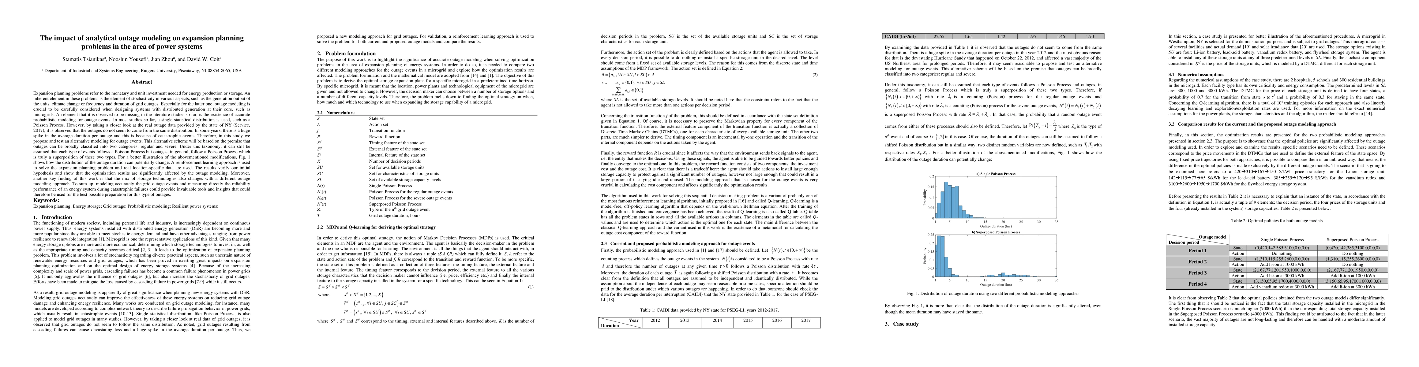 Expansion planning problems refer to the monetary and unit investment needed for energy production or storage. An inherent element in these problems is the element of stochasticity in various aspects, such as the generation output of the units, climate change or frequency and duration of grid outages. Especially for the latter one, outage modeling is crucial to be carefully considered when designing systems with distributed generation at their core, such as microgrids. In most studies so far, a single statistical distribution is used, such as a Poisson Process. However, by taking a closer look at the real outage data provided by the state of NY, it is observed that the outages do not seem to come from the same distribution. In some years, there is a huge spike in the average duration per outage and this is because of catastrophic events. Therefore, in this study we propose and test an alternative modeling for outage events. This alternative scheme will be based on the premise that outages can be broadly classified into two categories: regular and severe. Under this taxonomy, it can still be assumed that each type of events follows a Poisson Process but outages, in general, follow a Poisson Process which is truly a superposition of these two types. A reinforcement learning approach is used to solve the expansion planning problem and real location-specific data are used. The results verify our initial hypothesis and show that the optimization results are significantly affected by the outage modeling. To sum up, modeling accurately the grid outage events and measuring directly the reliability performance of an energy system during catastrophic failures could provide invaluable tools and insights that could therefore be used for the best possible preparation for this type of outages.