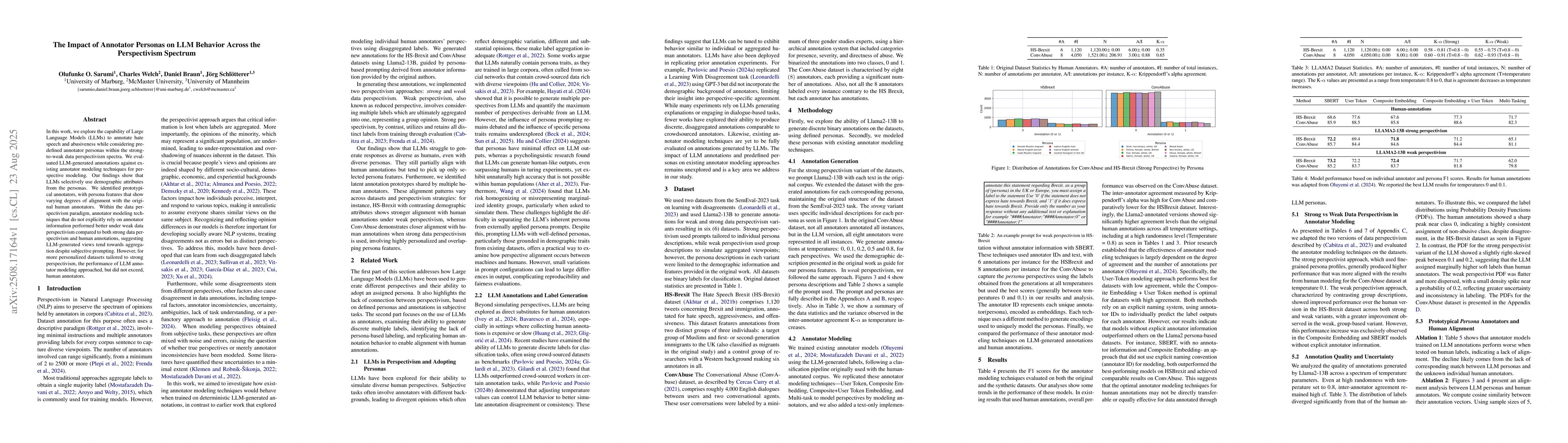 In this work, we explore the capability of Large Language Models (LLMs) to annotate hate speech and abusiveness while considering predefined annotator personas within the strong-to-weak data perspectivism spectra. We evaluated LLM-generated annotations against existing annotator modeling techniques for perspective modeling. Our findings show that LLMs selectively use demographic attributes from the personas. We identified prototypical annotators, with persona features that show varying degrees of alignment with the original human annotators. Within the data perspectivism paradigm, annotator modeling techniques that do not explicitly rely on annotator information performed better under weak data perspectivism compared to both strong data perspectivism and human annotations, suggesting LLM-generated views tend towards aggregation despite subjective prompting. However, for more personalized datasets tailored to strong perspectivism, the performance of LLM annotator modeling approached, but did not exceed, human annotators.