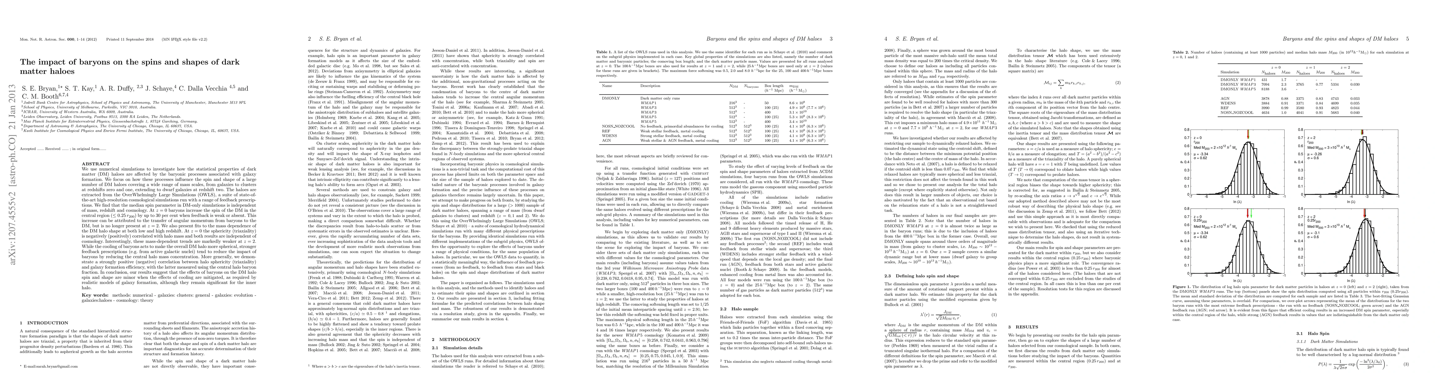 The paper presents detailed analysis of dark matter halo spin and shape parameters using high-resolution cosmological simulations with various feedback prescriptions, providing a robust study of baryonic effects on dark matter halo properties.