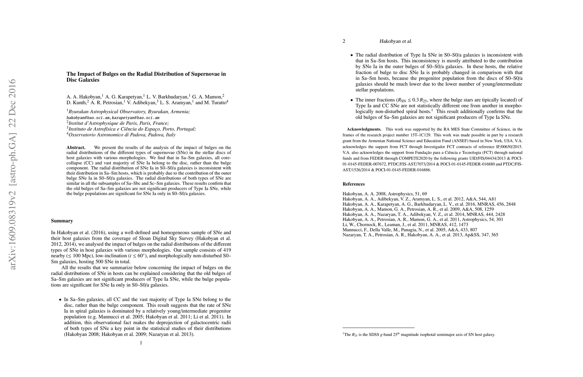 We present the results of the analysis of the impact of bulges on the radial distributions of the different types of supernovae (SNe) in the stellar discs of host galaxies with various morphologies. We find that in Sa-Sm galaxies, all core-collapse (CC) and vast majority of SNe Ia belong to the disc, rather than the bulge component. The radial distribution of SNe Ia in S0-S0/a galaxies is inconsistent with their distribution in Sa-Sm hosts, which is probably due to the contribution of the outer bulge SNe Ia in S0-S0/a galaxies. The radial distributions of both types of SNe are similar in all the subsamples of Sa-Sbc and Sc-Sm galaxies. These results confirm that the old bulges of Sa-Sm galaxies are not significant producers of Type Ia SNe, while the bulge populations are significant for SNe Ia only in S0-S0/a galaxies.