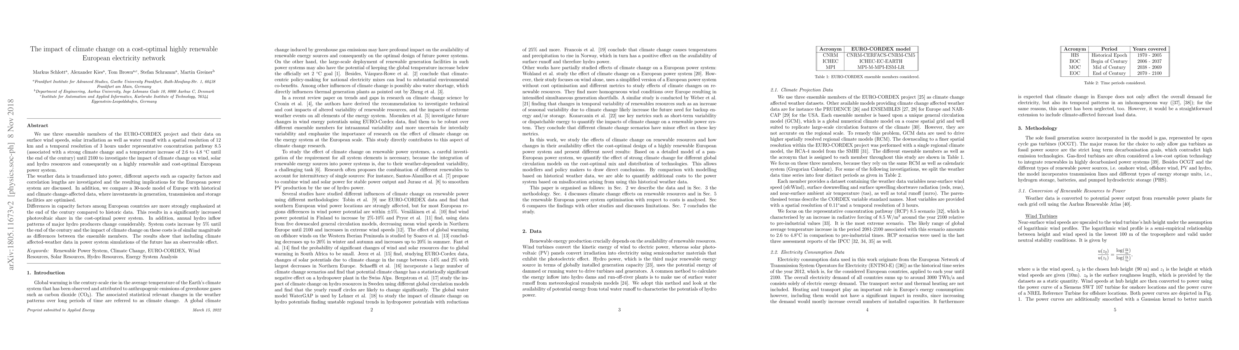 This study examines the impact of climate change on a highly renewable European electricity network, using climate data to analyze wind, solar, and hydro resources. It finds that climate change will increase photovoltaic capacity and raise system costs by 5% by 2100, with variations in capacity factors among countries becoming more pronounced.