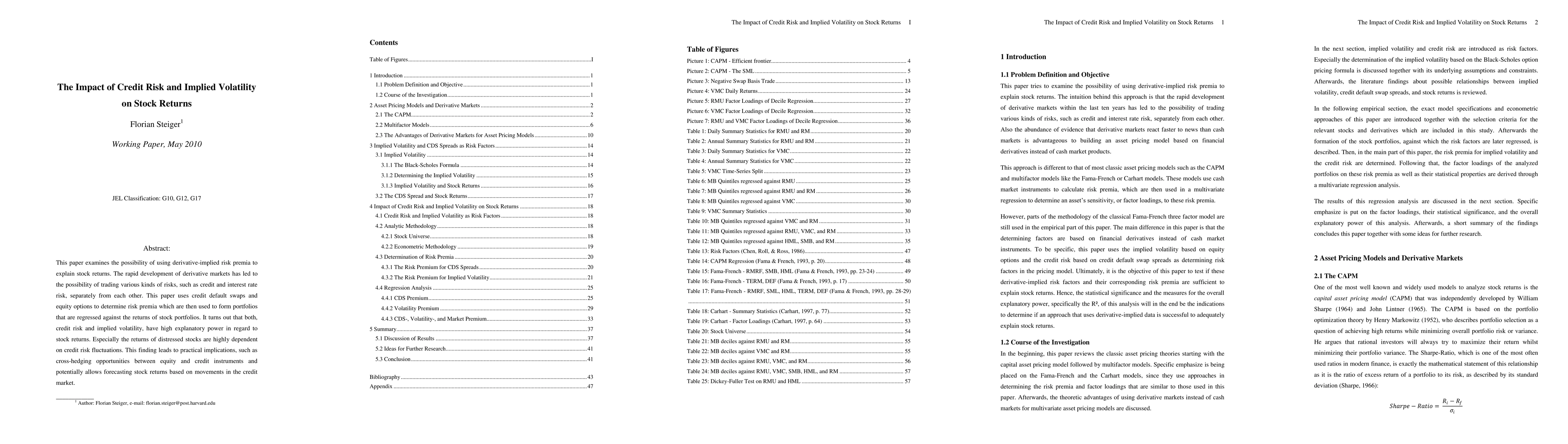 The development of a new framework for understanding the relationship between credit risk, implied volatility, and stock returns.