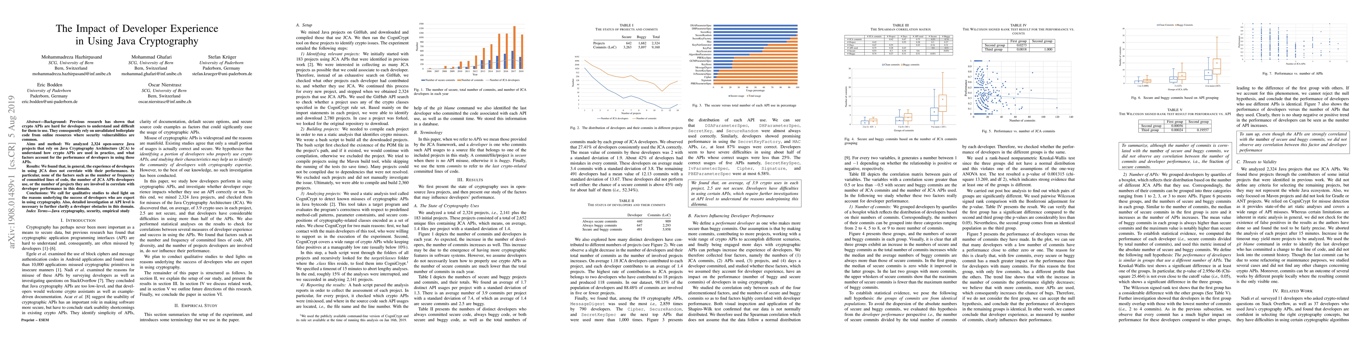 This study analyzes 2,324 open-source Java projects using Java Cryptography Architecture (JCA) to determine factors influencing developer performance. It finds no correlation between developer experience and performance, suggesting a need for qualitative studies and detailed API-level investigations to understand successful cryptography use.