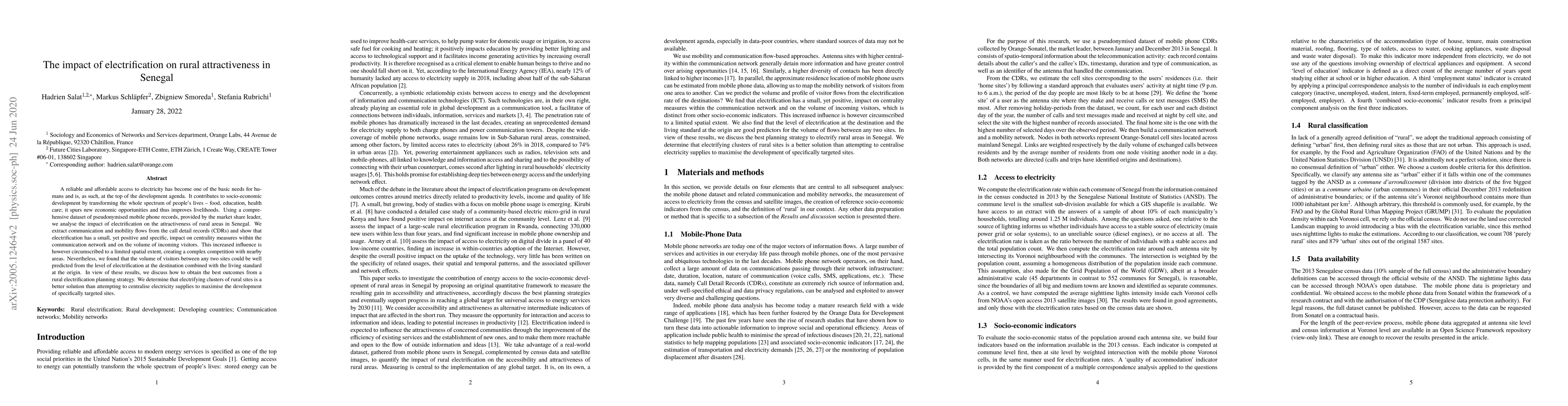 This study examines the effect of electrification on rural attractiveness in Senegal using mobile phone data, finding a small but positive impact on communication centrality and visitor volume. It concludes that electrifying clusters of rural areas is more beneficial than focusing on individual sites.