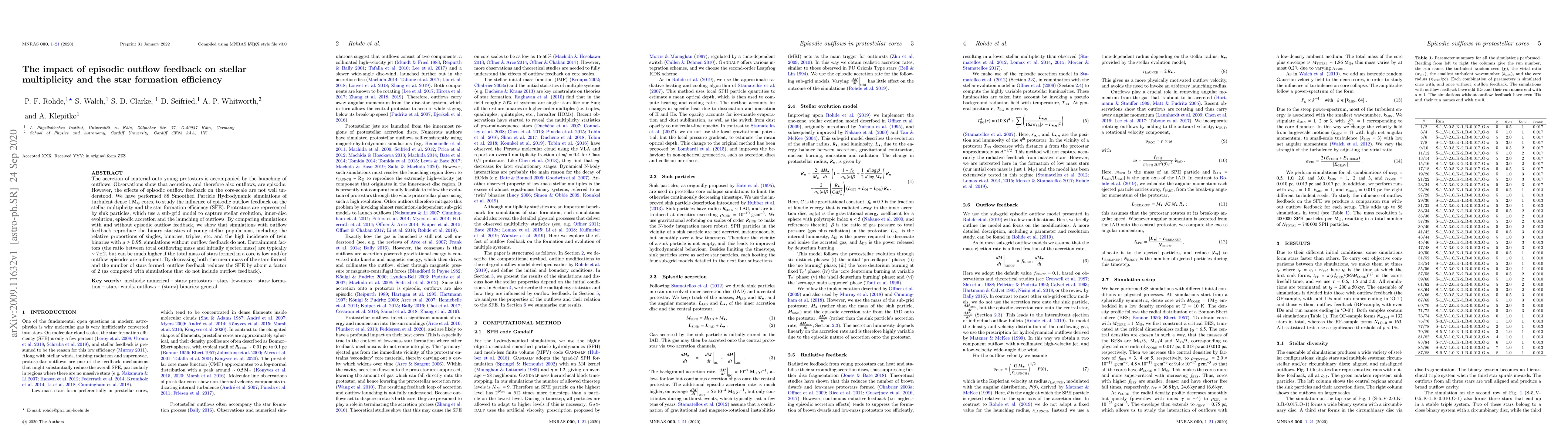This study uses smoothed particle hydrodynamic simulations to investigate how episodic outflow feedback influences stellar multiplicity and star formation efficiency. Results show that outflow feedback reproduces observed binary statistics and reduces star formation efficiency by about a factor of 2 compared to simulations without such feedback.