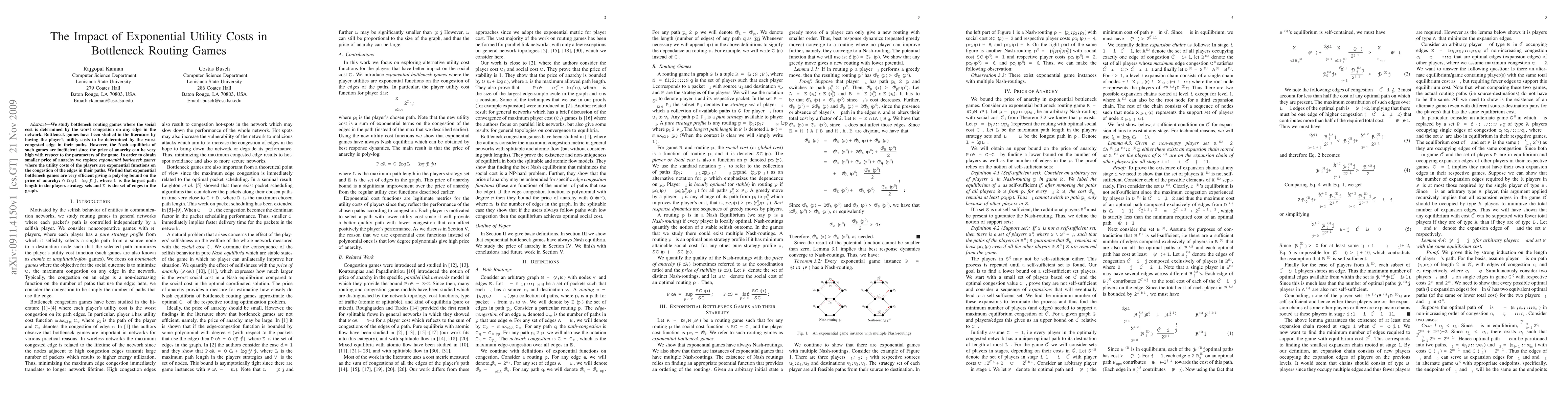 This paper investigates bottleneck routing games with exponential utility costs, finding that these games achieve a poly-log bound on the price of anarchy, O(log L log |E|), improving efficiency compared to traditional bottleneck games.