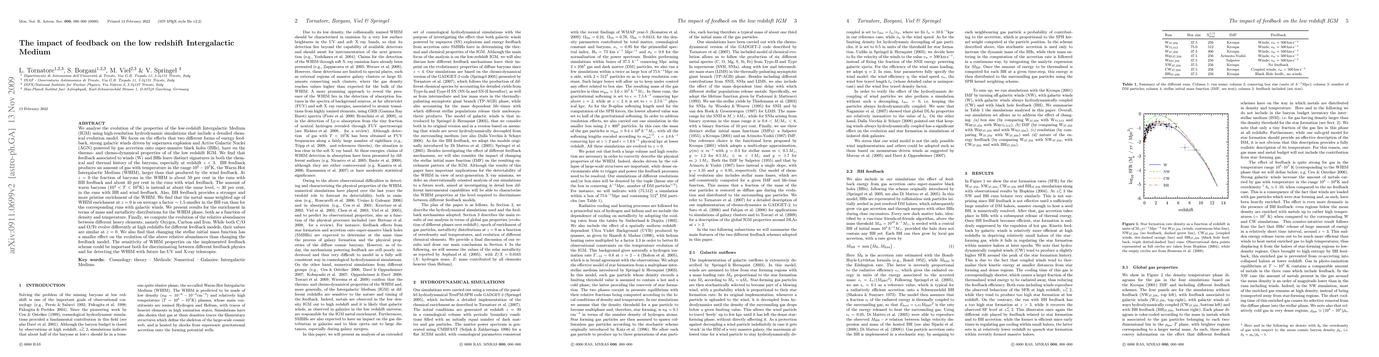 We analyse the evolution of the properties of the low-redshift Intergalactic Medium (IGM) using high-resolution hydrodynamic simulations that include a detailed chemical evolution model. We focus on the effects that two different forms of energy feedback, strong galactic winds driven by supernova explosion and Active Galactic Nuclei (AGN) powered by gas accretion onto super-massive black holes (BHs), have on the thermo- and chemo-dynamical properties of of the low redshift IGM. We find that feedback associated to winds (W) and BHs leave distinct signatures in both the chemical and thermal history of the baryons, especially at redshift z<3 [..] We present results for the enrichment in terms of mass and metallicity distributions for the WHIM phase, both as a function of density and temperature. Finally, we compute the evolution of the relative abundances between different heavy elements, namely Oxygen, Carbon and Iron. While both C/O and O/Fe evolve differently at high redshifts for different feedback models, their values are similar at z=0 [..]. The sensitivity of WHIM properties on the implemented feedback scheme could be important both for discriminating between different feedback physics and for detecting the WHIM with future far-UV and X-ray telescopes.
