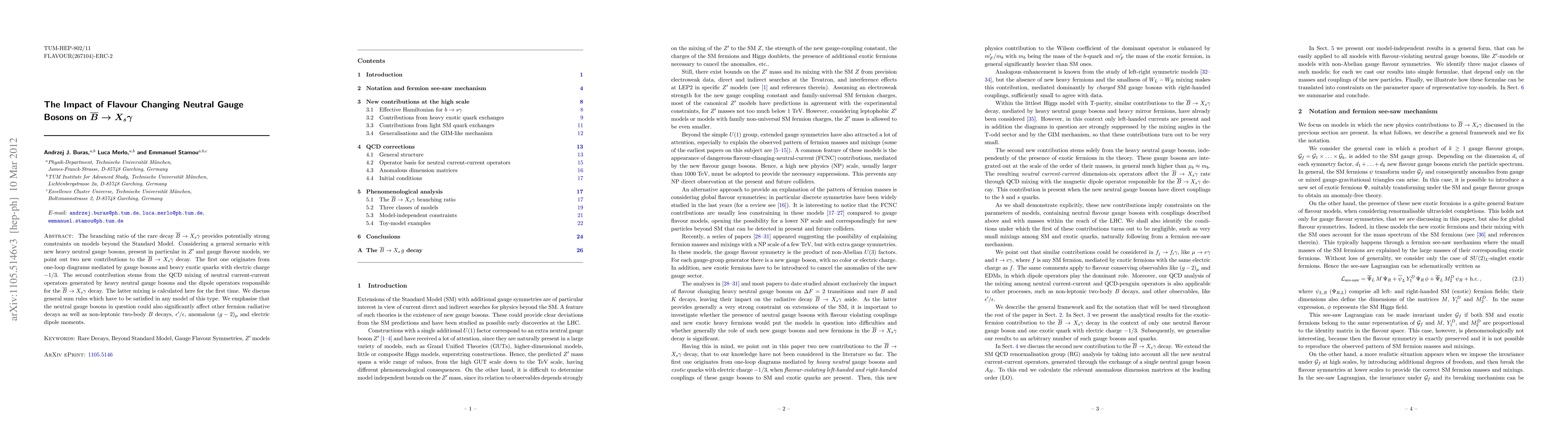 This paper investigates the impact of flavour changing neutral gauge bosons on the decay B->X_s gamma, identifying two new contributions: one from one-loop diagrams involving gauge bosons and exotic quarks, and another from QCD mixing of neutral current operators. It emphasizes the potential significance of these new gauge bosons in affecting various other decay processes.