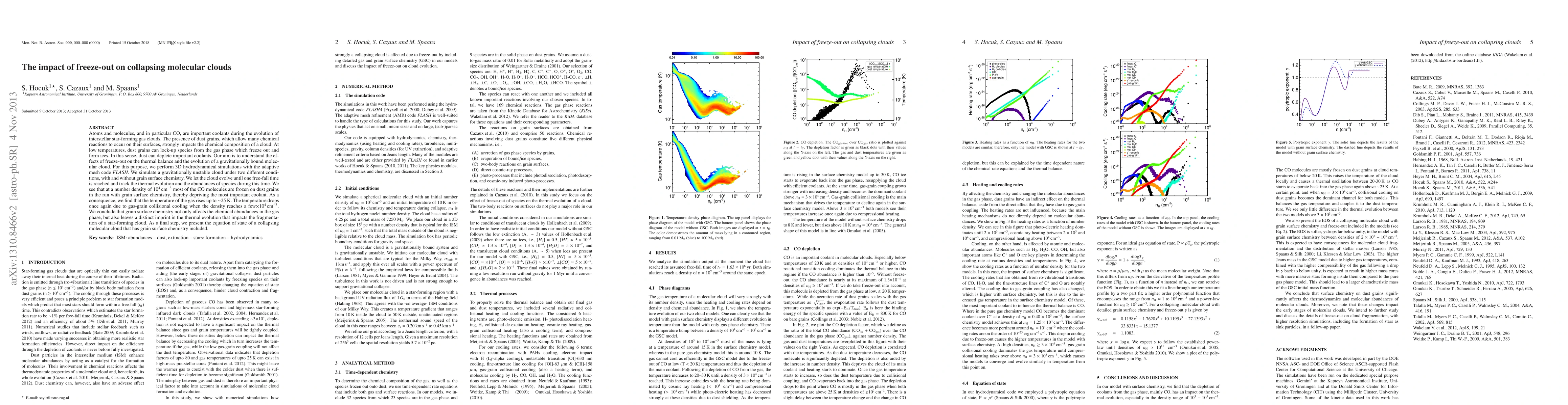 Atoms and molecules, and in particular CO, are important coolants during the evolution of interstellar star-forming gas clouds. The presence of dust grains, which allow many chemical reactions to occur on their surfaces, strongly impacts the chemical composition of a cloud. At low temperatures, dust grains can lock-up species from the gas phase which freeze out and form ices. In this sense, dust can deplete important coolants. Our aim is to understand the effects of freeze-out on the thermal balance and the evolution of a gravitationally bound molecular cloud. For this purpose, we perform 3D hydrodynamical simulations with the adaptive mesh code FLASH. We simulate a gravitationally unstable cloud under two different conditions, with and without grain surface chemistry. We let the cloud evolve until one free-fall time is reached and track the thermal evolution and the abundances of species during this time. We see that at a number density of 10$^4$ cm$^{-3}$ most of the CO molecules are frozen on dust grains in the run with grain surface chemistry, thereby depriving the most important coolant. As a consequence, we find that the temperature of the gas rises up to $\sim$25 K. The temperature drops once again due to gas-grain collisional cooling when the density reaches a few$\times$10$^4$ cm$^{-3}$. We conclude that grain surface chemistry not only affects the chemical abundances in the gas phase, but also leaves a distinct imprint in the thermal evolution that impacts the fragmentation of a star-forming cloud. As a final step, we present the equation of state of a collapsing molecular cloud that has grain surface chemistry included.