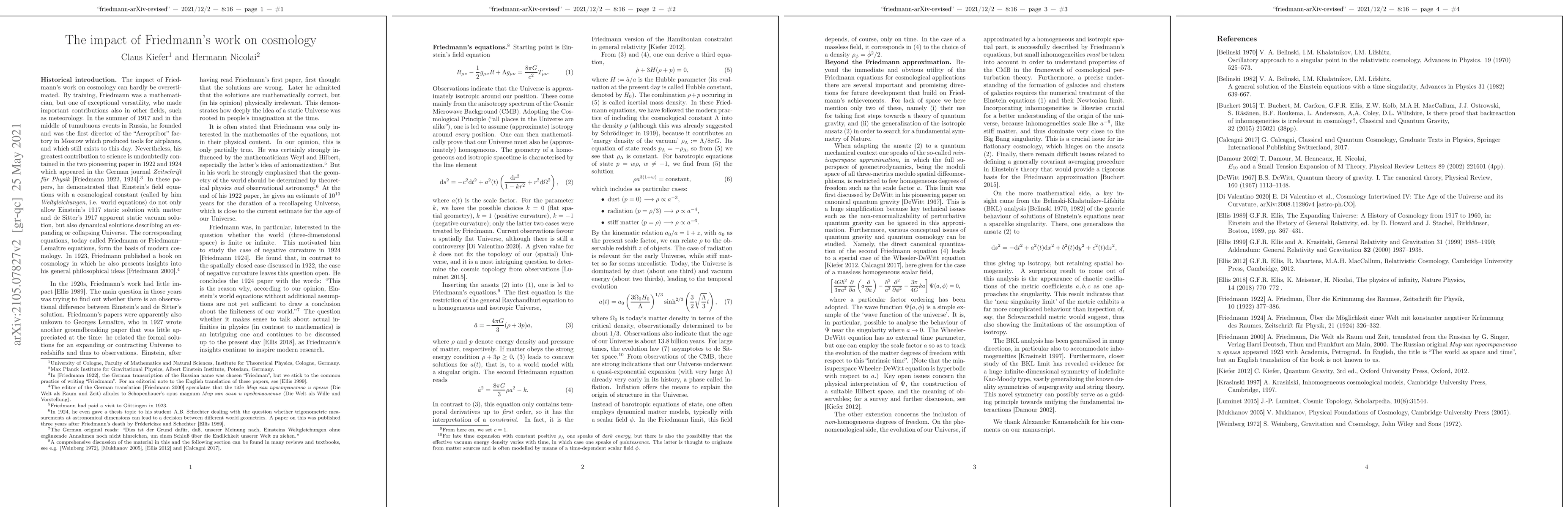 We present a brief review of Friedmann's impact on cosmology from a historical and a physical perspective.