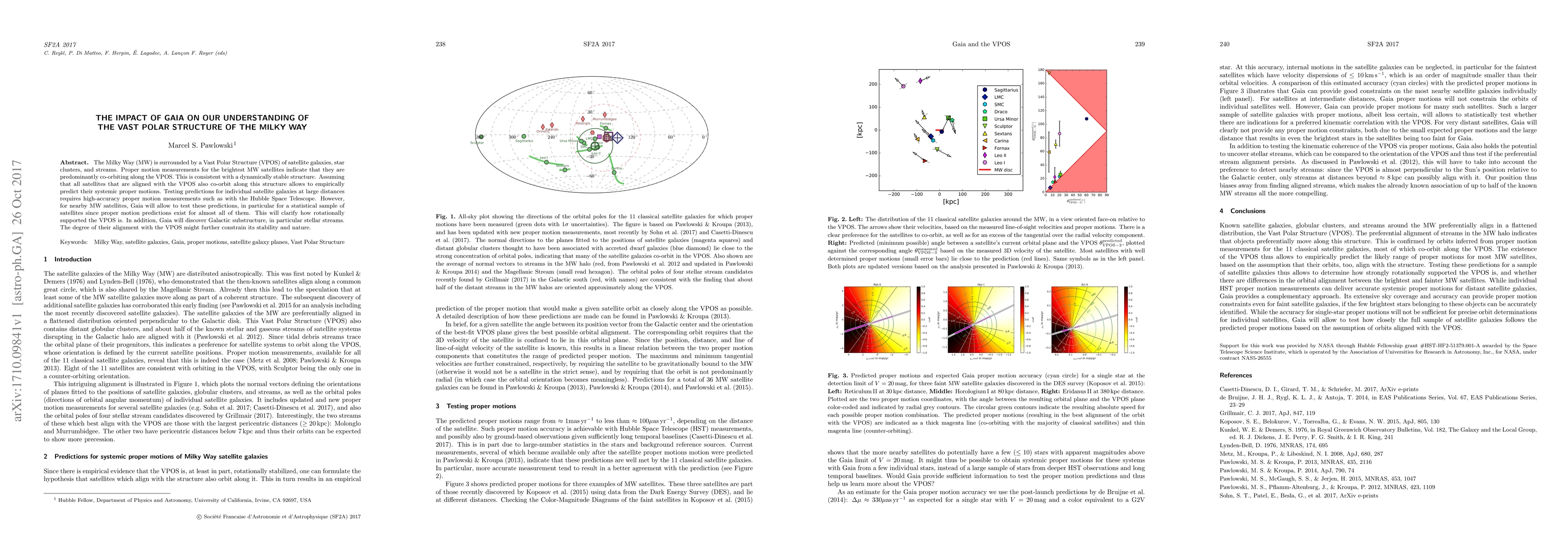 Gaia's high-accuracy proper motion measurements will test predictions of the co-orbiting nature of Milky Way's Vast Polar Structure (VPOS) satellites, clarifying its rotational support and stability. Additionally, Gaia will uncover Galactic substructures like stellar streams, whose alignment with the VPOS may further constrain its characteristics.