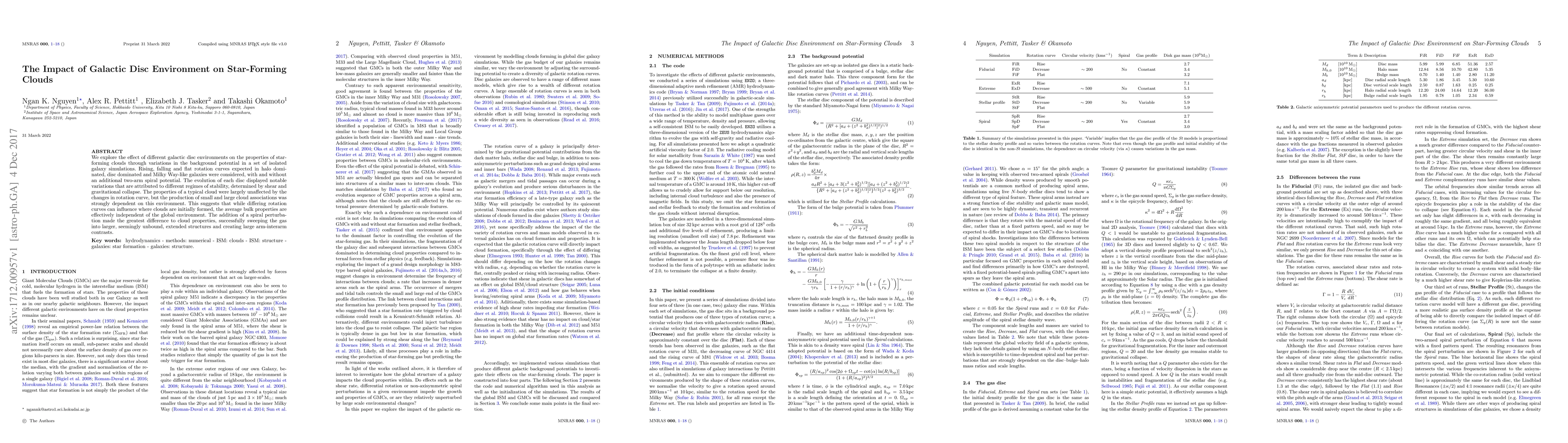 We explore the effect of different galactic disc environments on the properties of star-forming clouds through variations in the background potential in a set of isolated galaxy simulations. Rising, falling and flat rotation curves expected in halo dominated, disc dominated and Milky Way-like galaxies were considered, with and without an additional two-arm spiral potential. The evolution of each disc displayed notable variations that are attributed to different regimes of stability, determined by shear and gravitational collapse. The properties of a typical cloud were largely unaffected by the changes in rotation curve, but the production of small and large cloud associations was strongly dependent on this environment. This suggests that while differing rotation curves can influence where clouds are initially formed, the average bulk properties are effectively independent of the global environment. The addition of a spiral perturbation made the greatest difference to cloud properties, successfully sweeping the gas into larger, seemingly unbound, extended structures and creating large arm-interarm contrasts.