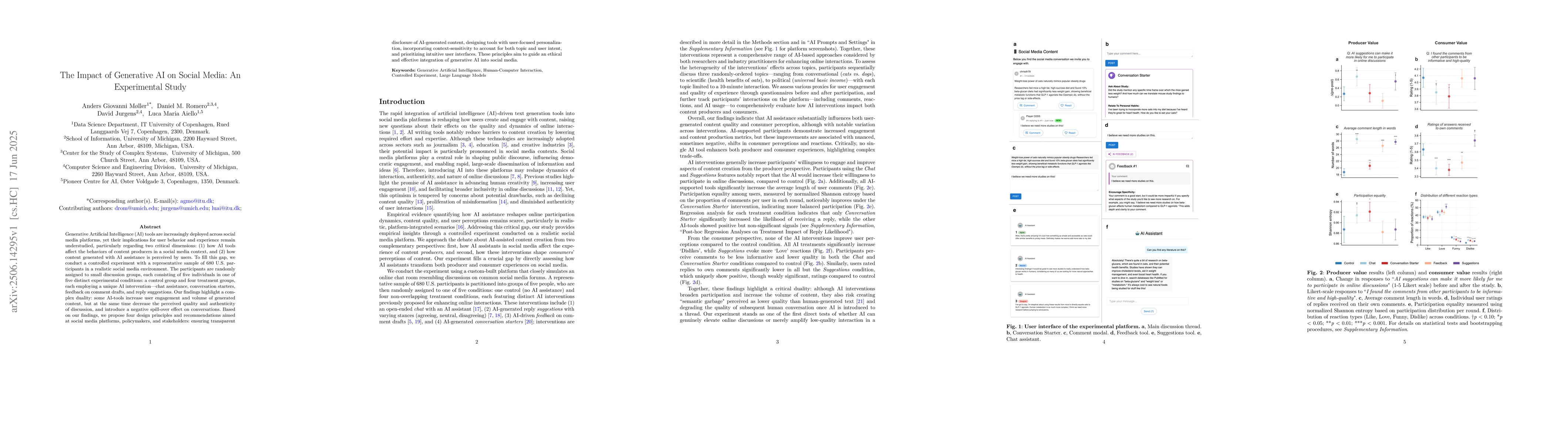 Generative Artificial Intelligence (AI) tools are increasingly deployed across social media platforms, yet their implications for user behavior and experience remain understudied, particularly regarding two critical dimensions: (1) how AI tools affect the behaviors of content producers in a social media context, and (2) how content generated with AI assistance is perceived by users. To fill this gap, we conduct a controlled experiment with a representative sample of 680 U.S. participants in a realistic social media environment. The participants are randomly assigned to small discussion groups, each consisting of five individuals in one of five distinct experimental conditions: a control group and four treatment groups, each employing a unique AI intervention-chat assistance, conversation starters, feedback on comment drafts, and reply suggestions. Our findings highlight a complex duality: some AI-tools increase user engagement and volume of generated content, but at the same time decrease the perceived quality and authenticity of discussion, and introduce a negative spill-over effect on conversations. Based on our findings, we propose four design principles and recommendations aimed at social media platforms, policymakers, and stakeholders: ensuring transparent disclosure of AI-generated content, designing tools with user-focused personalization, incorporating context-sensitivity to account for both topic and user intent, and prioritizing intuitive user interfaces. These principles aim to guide an ethical and effective integration of generative AI into social media.