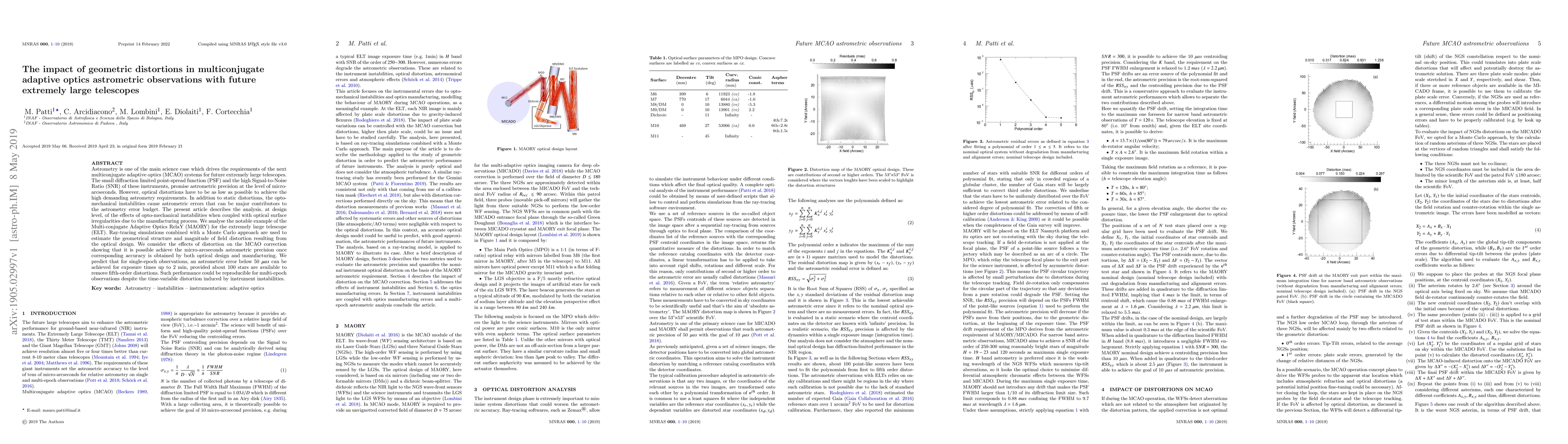 This paper investigates the impact of geometric distortions on astrometric observations using multiconjugate adaptive optics (MCAO) systems for future extremely large telescopes. It demonstrates that achieving micro-arcsecond precision astrometry requires minimizing both optical and opto-mechanical distortions, and predicts that with proper design and manufacturing accuracy, an astrometric error below 50µas can be attained for single-epoch observations.