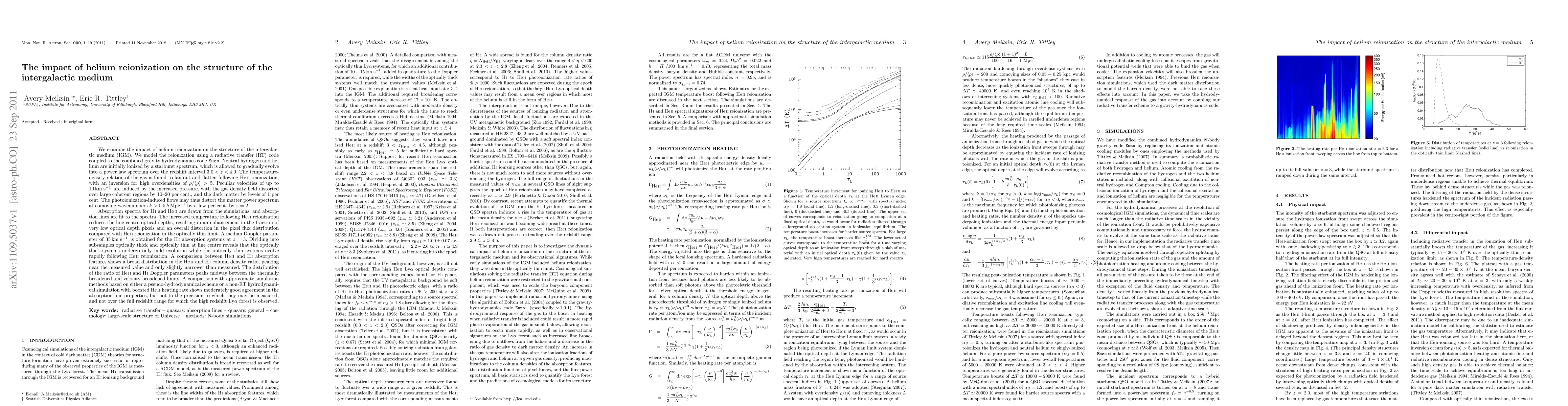 Research finds that helium reionization affects the structure of the intergalactic medium, inducing gas density fluctuations and distortion of dark matter over large regions. Absorption spectra indicate significant changes in ion column densities following HeII reionization.