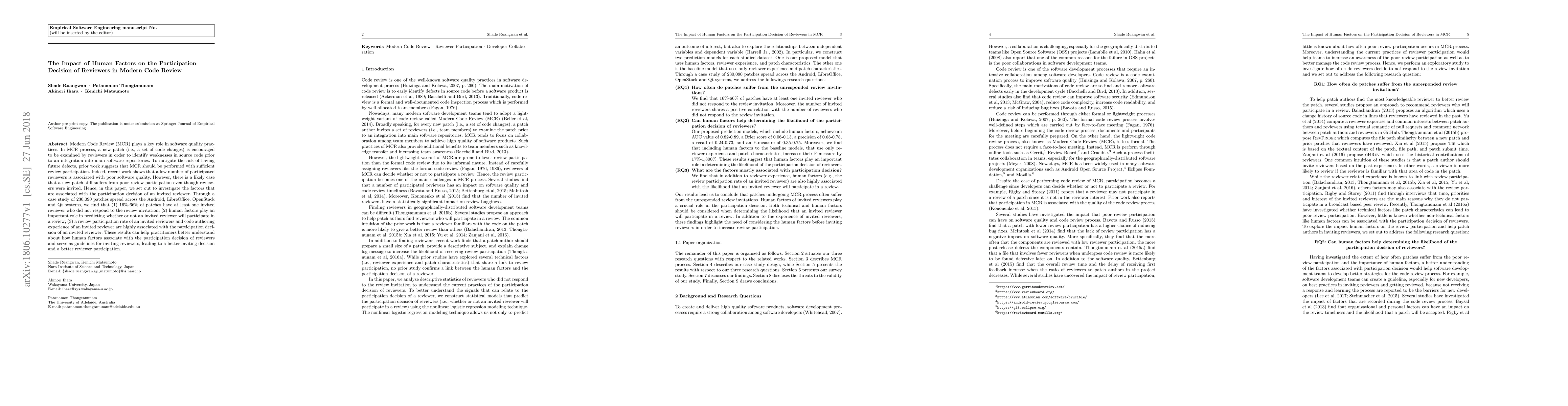 This paper investigates the human factors influencing reviewer participation in Modern Code Review, finding that factors like reviewer participation rate and code authoring experience significantly affect whether invited reviewers engage. The study, based on a large dataset from Android, LibreOffice, OpenStack, and Qt systems, highlights the importance of human factors in improving review participation and software quality.
