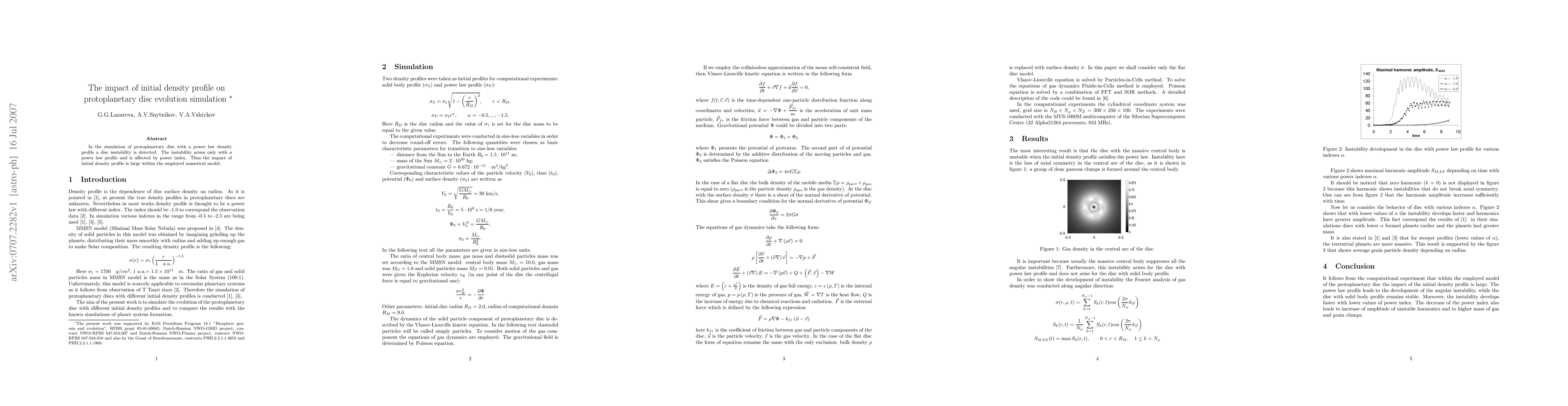 In the simulation of protoplanetary disc with a power law density profile a disc instability is detected. The instability arises only with a power law profile and is affected by power index. Thus the impact of initial density profile is large within the employed numerical model.