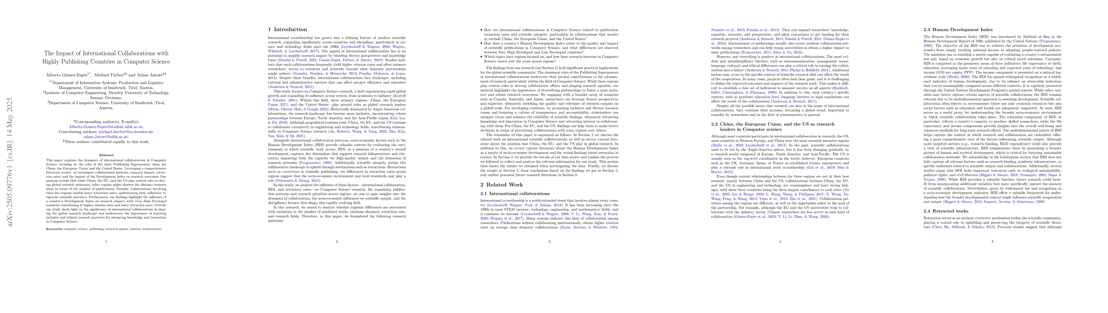Uniquely combines an examination of the Development Index with collaboration outcomes in Computer Science research, offering new insights into factors shaping global research impact.