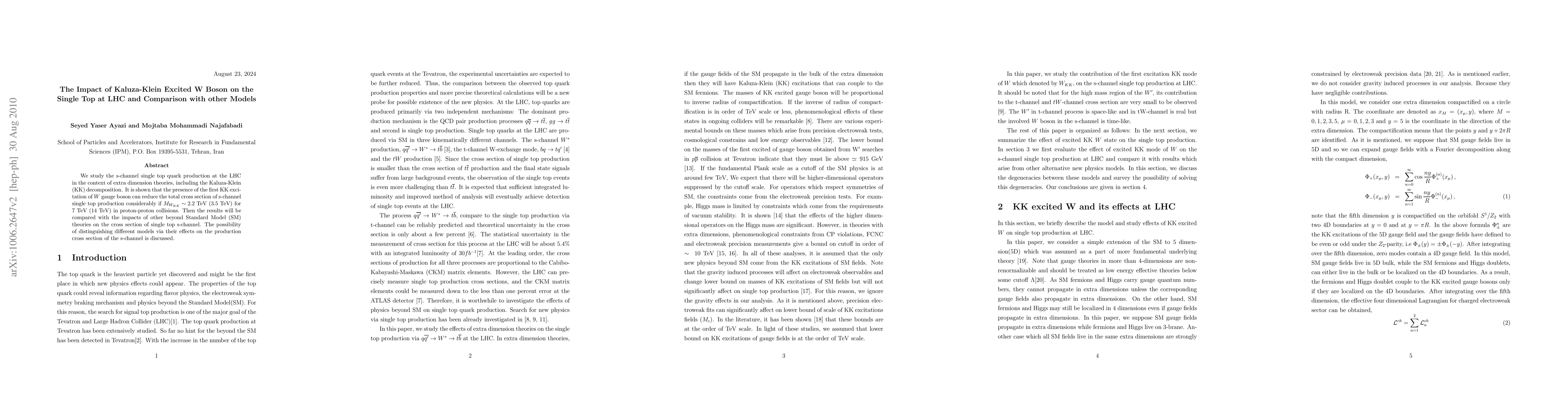 This paper investigates the effect of Kaluza-Klein excited W boson on the s-channel single top quark production at the LHC, showing significant reduction in cross section for $M_{W_{KK}}\sim2.2 \rm TeV$ ($3.5 \rm TeV$) at $7\rm TeV$ ($14\rm TeV$) proton-proton collisions. It also compares these effects with other beyond Standard Model theories to explore model differentiation via cross-section impacts.