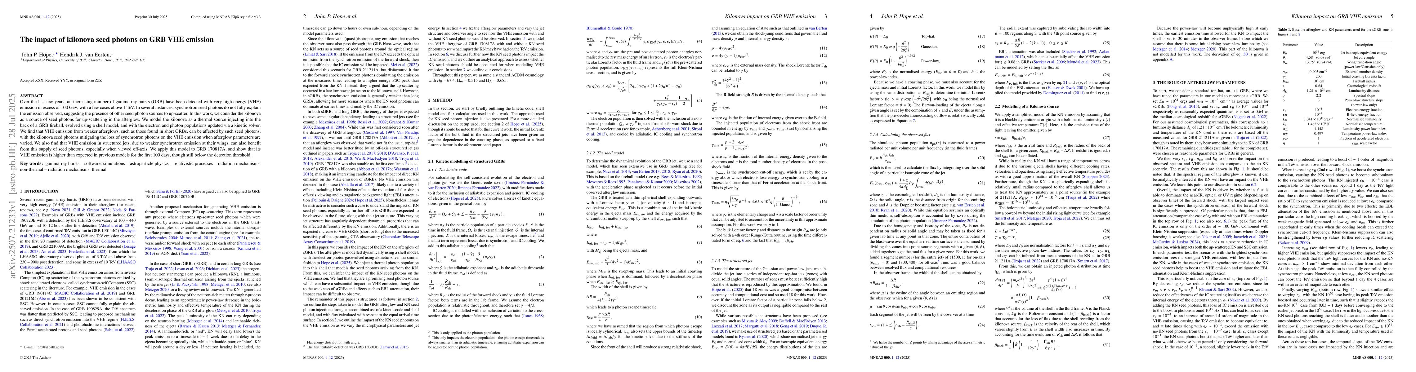 Over the last few years, an increasing number of gamma-ray bursts (GRB) have been detected with very high energy (VHE) emission in excess of 100 GeV, with a few cases above 1 TeV. In several instances, synchrotron seed photons do not fully explain the emission observed, suggesting the presence of other seed photon sources to up-scatter. In this work, we consider the kilonova as a source of seed photons for up-scattering in the afterglow. We model the kilonova as a thermal source injecting into the back of a GRB fireball, evolved using a shell model, and with the electron and photon populations updated via a kinetic solver. We find that VHE emission from weaker afterglows, such as those found in short GRBs, can be affected by such seed photons, with the kilonova seed photons mitigating the loss of synchrotron photons on the VHE emission when afterglow parameters are varied. We also find that VHE emission in structured jets, due to weaker synchrotron emission at their wings, can also benefit from this supply of seed photons, especially when viewed off-axis. We apply this model to GRB 170817A, and show that its VHE emission is higher than expected in previous models for the first 100 days, though still below the detection threshold.