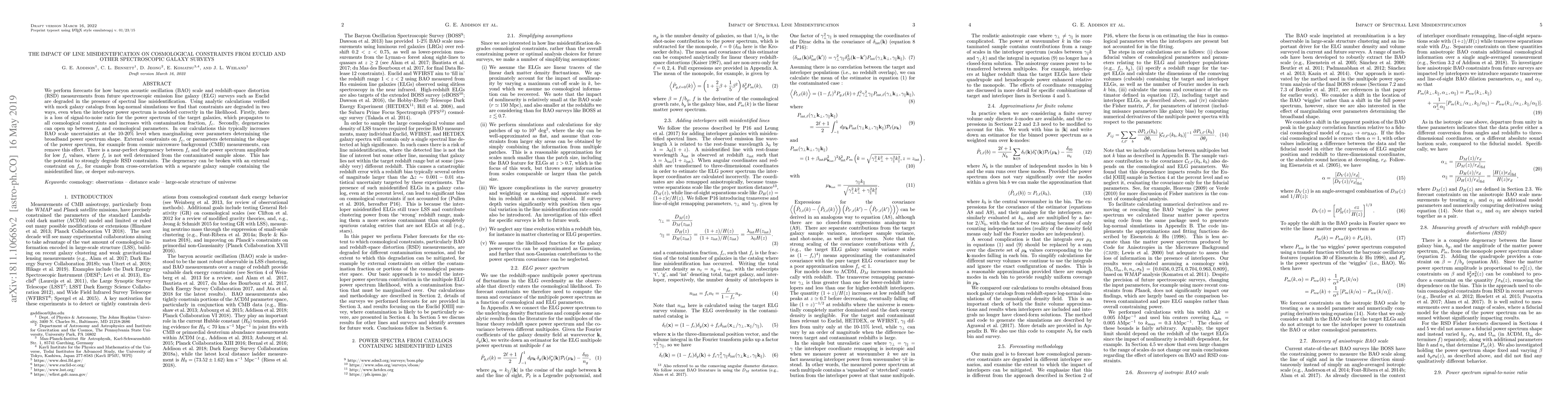 This paper investigates the impact of spectral line misidentification in future galaxy surveys like Euclid on cosmological constraints from BAO and RSD measurements. It finds that misidentification degrades signal-to-noise ratios and introduces degeneracies between contamination and cosmological parameters, potentially increasing BAO uncertainties by 10-20%. External constraints on contamination can mitigate these effects.