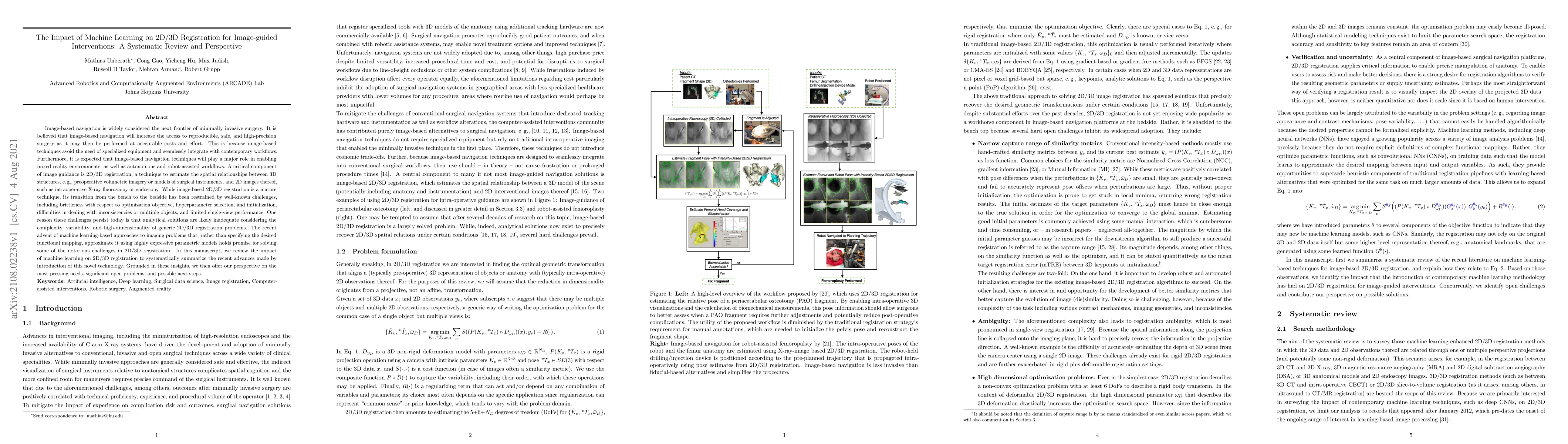 This paper reviews the impact of machine learning on 2D/3D registration for image-guided interventions, highlighting recent advances that address longstanding challenges such as brittleness and limited performance. The authors offer perspectives on future directions and unresolved issues in this evolving field.