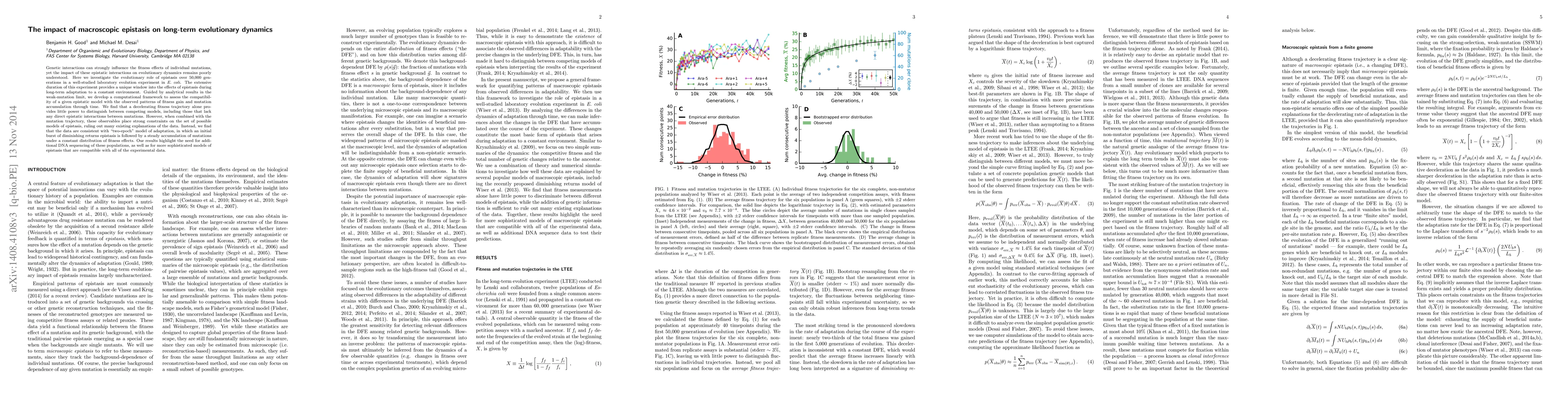 This study explores the long-term evolutionary dynamics of E. coli over 50,000 generations, revealing that while decelerating fitness alone does not distinguish epistatic models, combining it with mutation accumulation does. The findings support a "two-epoch" model of adaptation, emphasizing the need for advanced epistasis models and further sequencing.