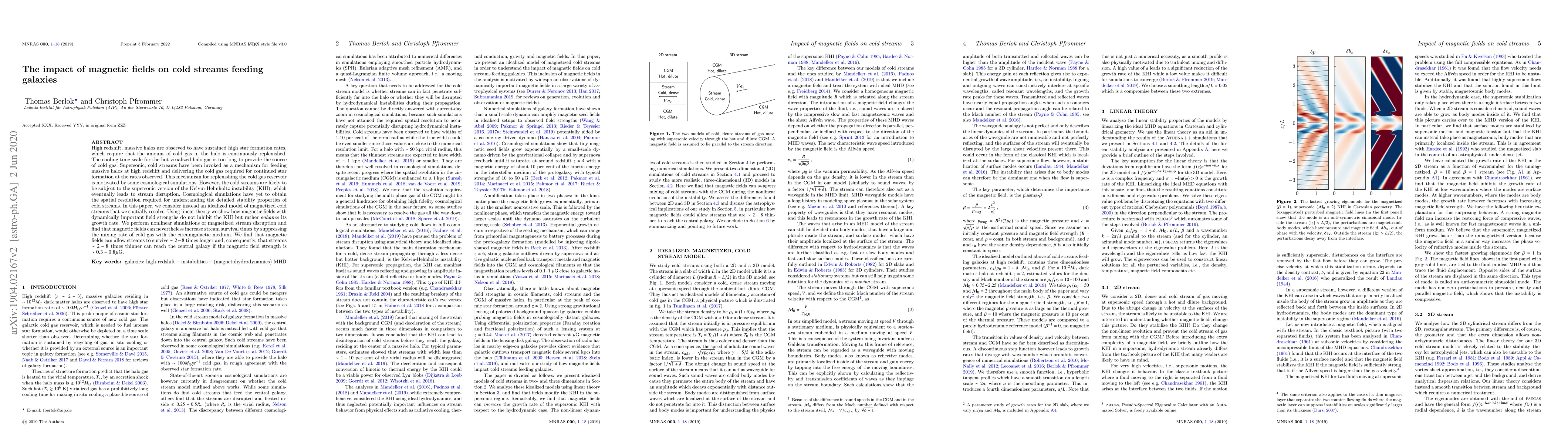 This paper investigates how magnetic fields affect cold gas streams feeding galaxies, finding that while magnetic fields do not inhibit the Kelvin-Helmholtz instability, they can enhance stream survival times by suppressing gas mixing, allowing streams to persist up to 8 times longer and reach the central galaxy under certain magnetic field strengths.