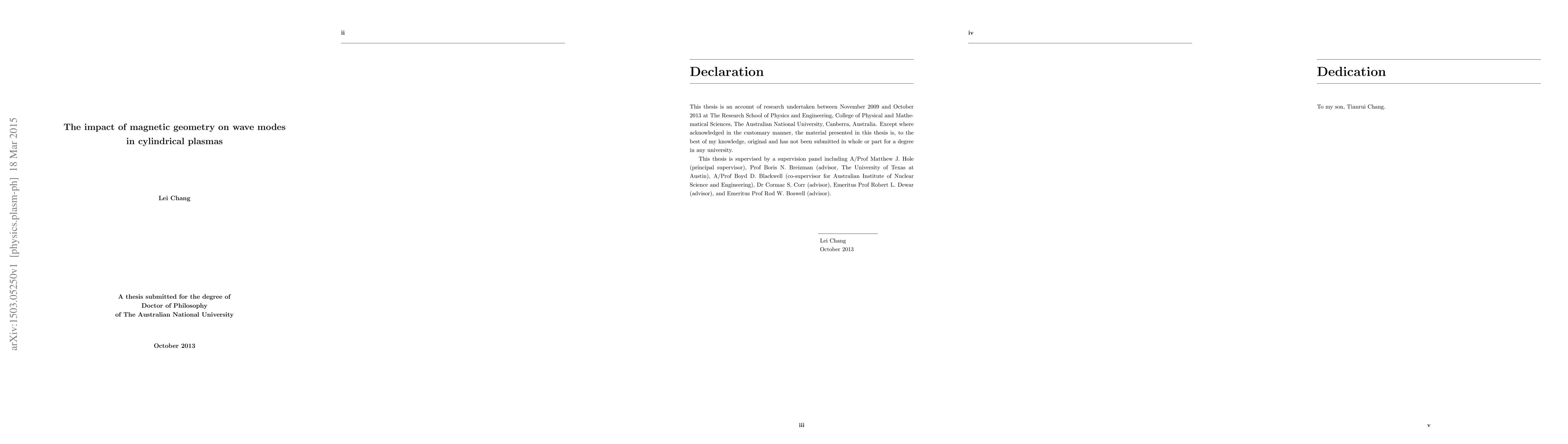 Both space and laboratory plasmas can be associated with static magnetic field, and the field geometry varies from uniform to non-uniform. This thesis investigates the impact of magnetic geometry on wave modes in cylindrical plasmas. The cylindrical configuration is chosen so as to explore this impact in a tractable but experimentally realisable configuration. Three magnetic geometries are considered: uniform, focused and rippled. These studies suggest suppressing drift waves in a uniformly magnetised plasma by increasing the field strength, enhancing the efficiency of helicon wave production of plasma by using a focused magnetic field, and forming a gap eigenmode on a linear plasma device by introducing a local defect to the system's periodicity, which is useful for understanding the gap-mode formation and interaction with energetic particles in fusion plasmas.