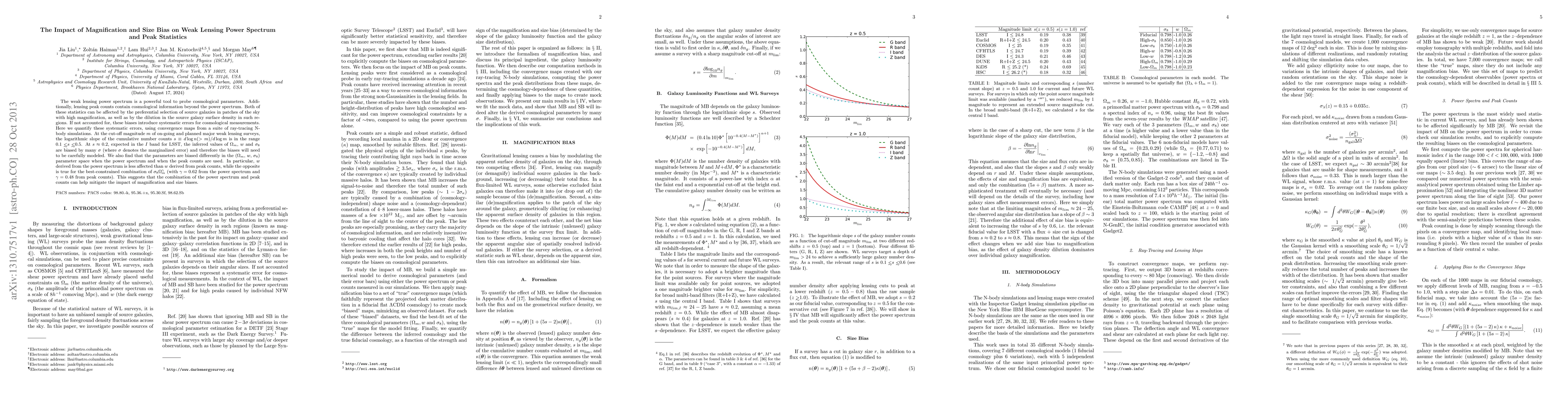 This paper quantifies systematic errors in weak lensing power spectrum and peak statistics due to magnification and size bias, showing that these biases can significantly affect cosmological parameter estimates. The study finds that biases in parameters like Omega_m, w, and sigma_8 are more pronounced when using peak counts compared to the power spectrum, suggesting a combined approach can mitigate these effects.
