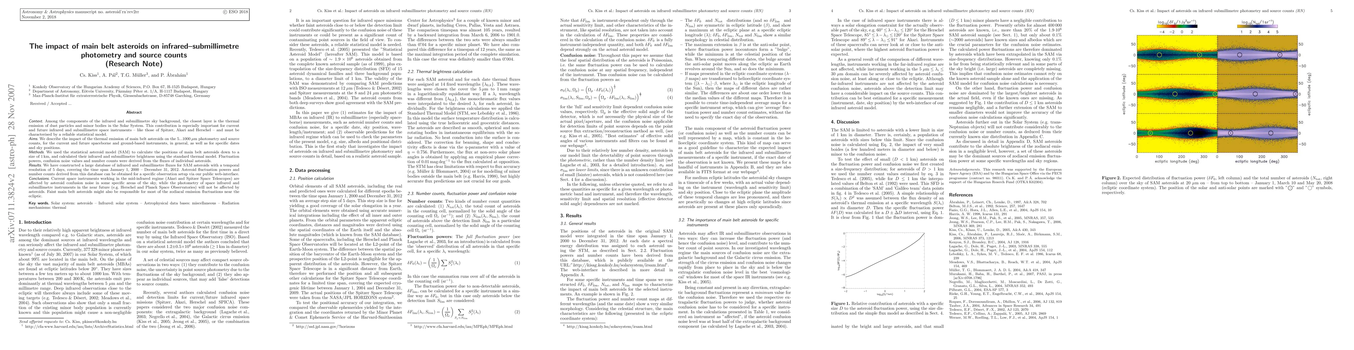 This paper investigates the influence of main belt asteroids on infrared and submillimetre photometry and source counts, using a statistical asteroid model. It reveals that current mid-infrared instruments like Akari and Spitzer experience confusion noise from asteroids, while future instruments like Herschel and Planck are expected to be unaffected.