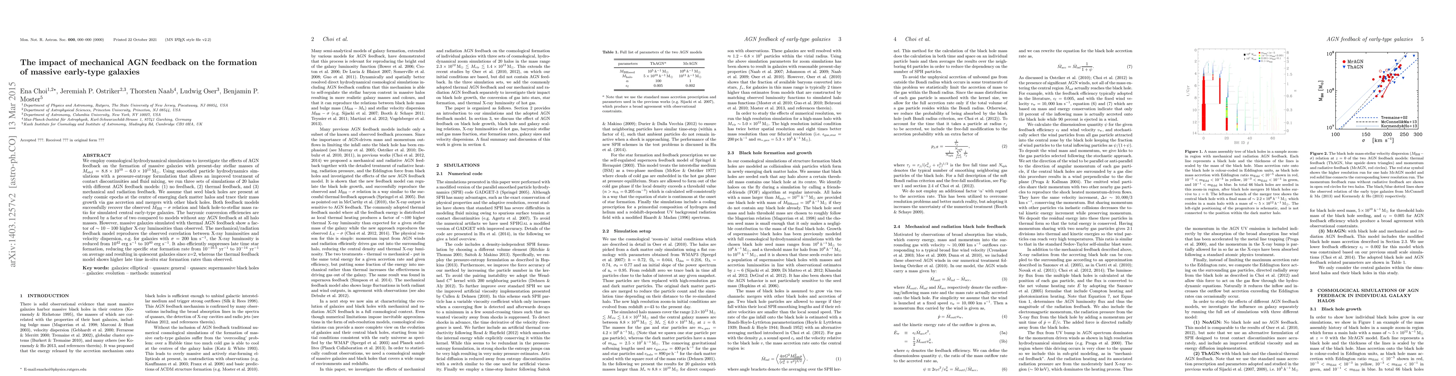This study uses cosmological simulations to explore how AGN feedback influences the formation of massive early-type galaxies. The mechanical/radiation feedback model effectively suppresses star formation and aligns with observed X-ray luminosity correlations, while thermal feedback overproduces X-ray luminosity and star formation.