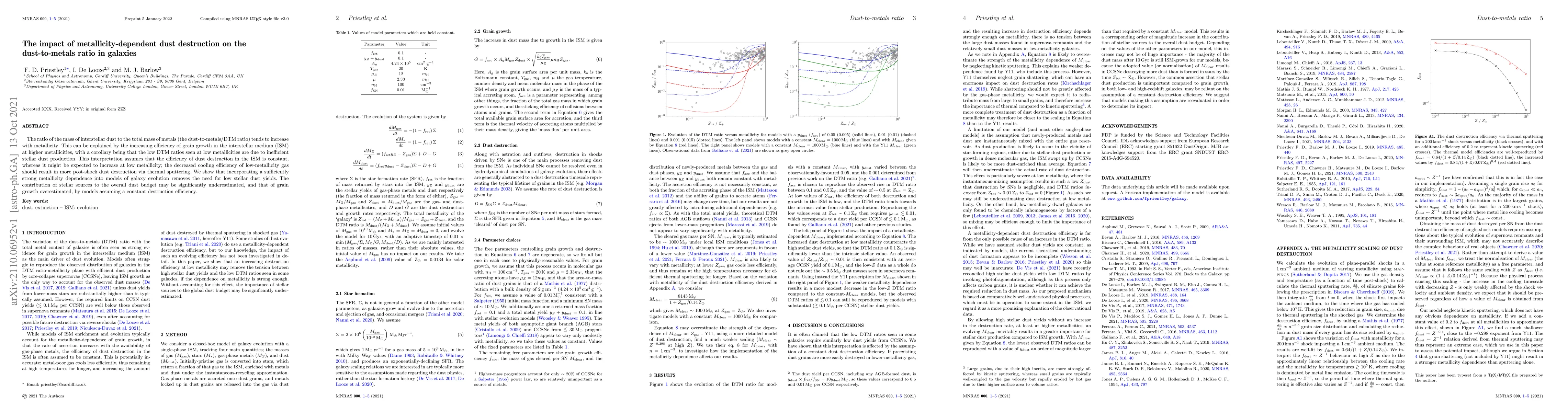 This paper investigates how metallicity-dependent dust destruction affects the dust-to-metals ratio in galaxies, finding that models assuming constant dust destruction efficiency may underestimate stellar dust production and overestimate grain growth. Incorporating a strong metallicity dependence in galaxy evolution models resolves the need for low stellar dust yields.