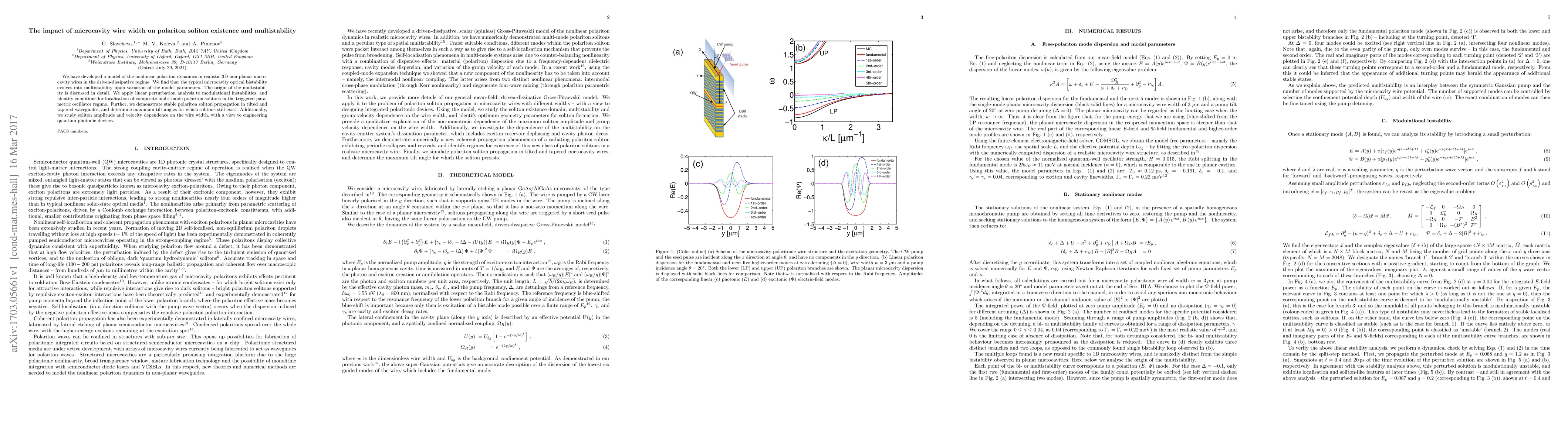 This paper models nonlinear polariton dynamics in 3D microcavity wires, revealing that optical bistability transforms into multistability via parameter variation. It also identifies conditions for polariton soliton localization and demonstrates stable soliton propagation in tilted and tapered waveguides, exploring the impact of wire width on soliton amplitude and velocity for quantum photonic device engineering.