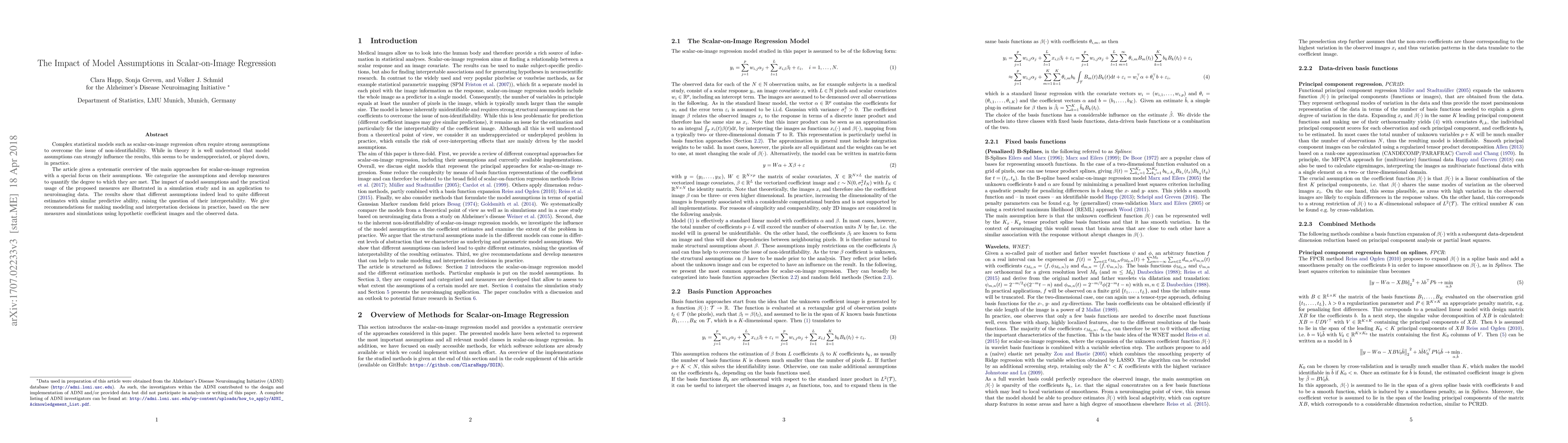 This paper systematically examines the impact of model assumptions in scalar-on-image regression, highlighting how different assumptions lead to varying estimates despite similar predictive abilities. The study proposes measures to quantify assumption fulfillment and demonstrates their practical usage through simulations and neuroimaging data analysis.