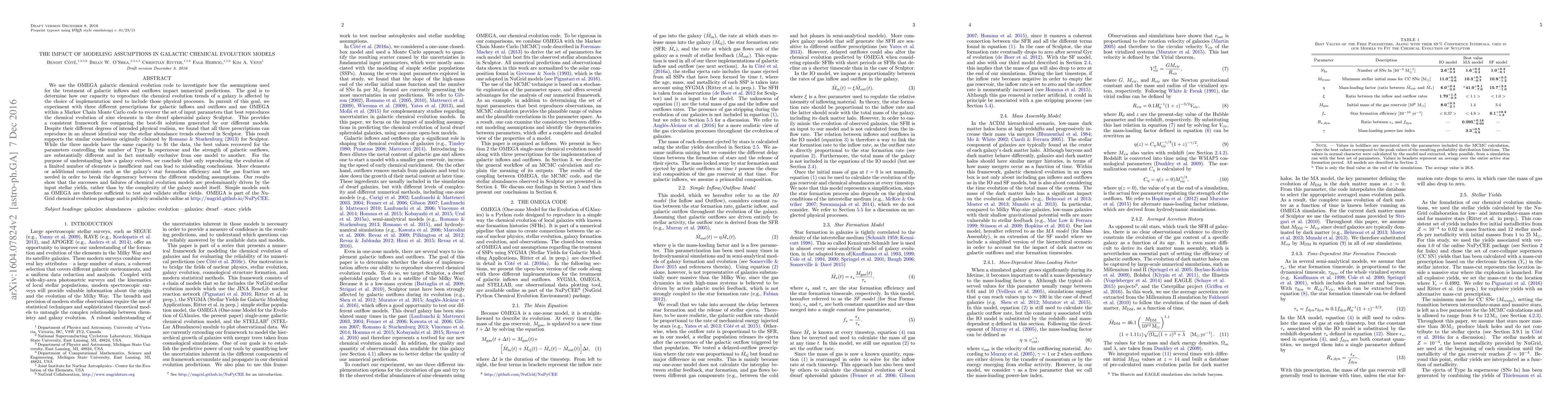 We use the OMEGA galactic chemical evolution code to investigate how the assumptions used for the treatment of galactic inflows and outflows impact numerical predictions. The goal is to determine how our capacity to reproduce the chemical evolution trends of a galaxy is affected by the choice of implementation used to include those physical processes. In pursuit of this goal, we experiment with three different prescriptions for galactic inflows and outflows and use OMEGA within a Markov Chain Monte Carlo code to recover the set of input parameters that best reproduces the chemical evolution of nine elements in the dwarf spheroidal galaxy Sculptor. This provides a consistent framework for comparing the best-fit solutions generated by our different models. Despite their different degrees of intended physical realism, we found that all three prescriptions can reproduce in an almost identical way the stellar abundance trends observed in Sculptor. While the three models have the same capacity to fit the data, the best values recovered for the parameters controlling the number of Type Ia supernovae and the strength of galactic outflows, are substantially different and in fact mutually exclusive from one model to another. For the purpose of understanding how a galaxy evolves, we conclude that only reproducing the evolution of a limited number of elements is insufficient and can lead to misleading conclusions. More elements or additional constraints such as the galaxy's star formation efficiency and the gas fraction are needed in order to break the degeneracy between the different modeling assumptions. Our results show that the successes and failures of chemical evolution models are predominantly driven by the input stellar yields, rather than by the complexity of the galaxy model itself. Simple models such as OMEGA are therefore sufficient to test and validate stellar yields.