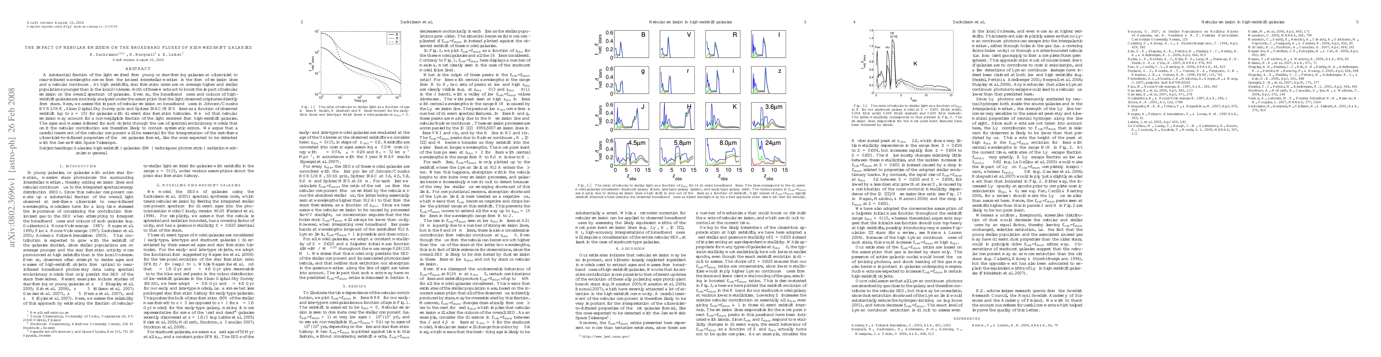 This study investigates the influence of nebular emission on the broadband fluxes of high-redshift galaxies, finding that it significantly contributes to their observed spectra. The omission of this contribution in the analysis can lead to systematic errors in inferred galaxy ages and masses.