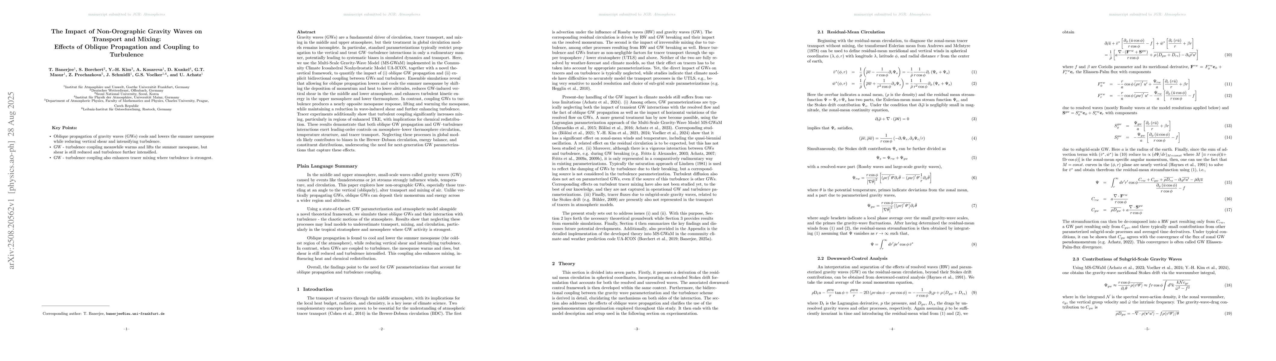 Gravity waves (GWs) are a fundamental driver of circulation, tracer transport, and mixing in the middle and upper atmosphere, but their treatment in global circulation models remains incomplete. In particular, standard parameterizations typically restrict propagation to the vertical and treat GW-turbulence interactions in only a rudimentary manner, potentially leading to systematic biases in simulated dynamics and transport. Here, we use the Multi-Scale Gravity-Wave Model (MS-GWaM) implemented in the Community Climate Icosahedral Nonhydrostatic Model UA-ICON, together with a novel theoretical framework, to quantify the impact of (i) oblique GW propagation and (ii) explicit bidirectional coupling between GWs and turbulence. Ensemble simulations reveal that allowing for oblique propagation lowers and cools the summer mesopause by shifting the deposition of momentum and heat to lower altitudes, reduces GW-induced vertical shear in the the middle and lower atmosphere, and enhances turbulent kinetic energy in the upper mesosphere and lower thermosphere. In contrast, coupling GWs to turbulence produces a nearly opposite mesopause response, lifting and warming the mesopause, while maintaining a reduction in wave-induced shear and further enhancing turbulence. Tracer experiments additionally show that turbulent coupling significantly increases mixing, particularly in regions of enhanced TKE, with implications for chemical redistribution. These results demonstrate that both oblique GW propagation and GW-turbulence interactions exert leading-order controls on mesosphere-lower thermosphere circulation, temperature structure, and tracer transport. Neglecting these processes in global models likely contributes to biases in the Brewer-Dobson circulation, energy balance, and constituent distributions, underscoring the need for next-generation GW parameterizations that capture these effects.